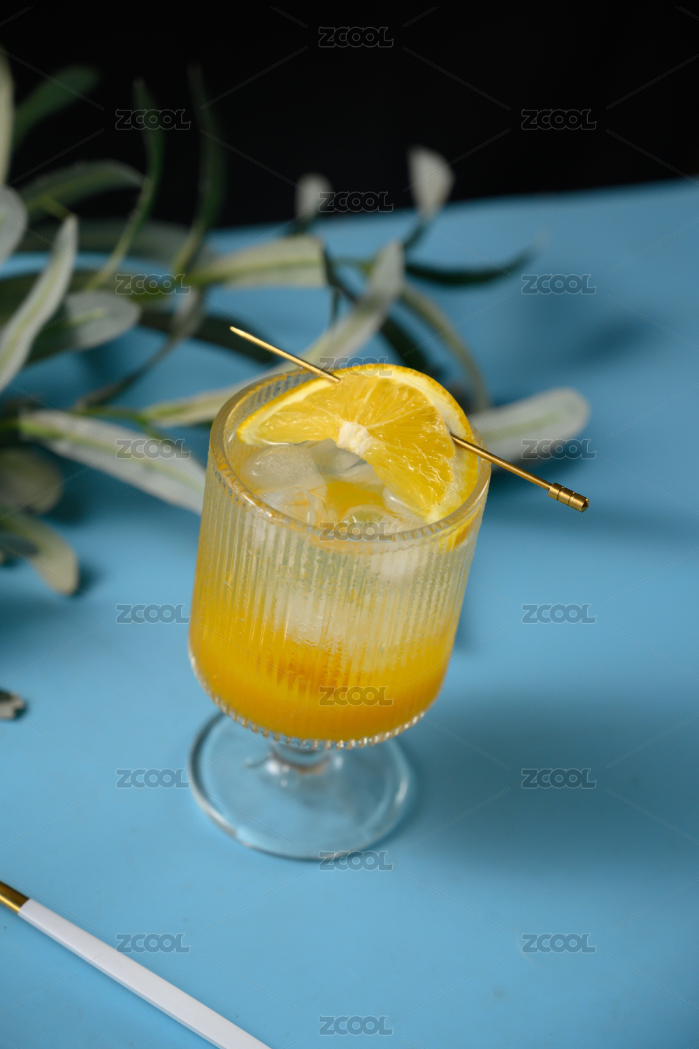 桌面上的杯子里的美味可口的香橙苏打水
