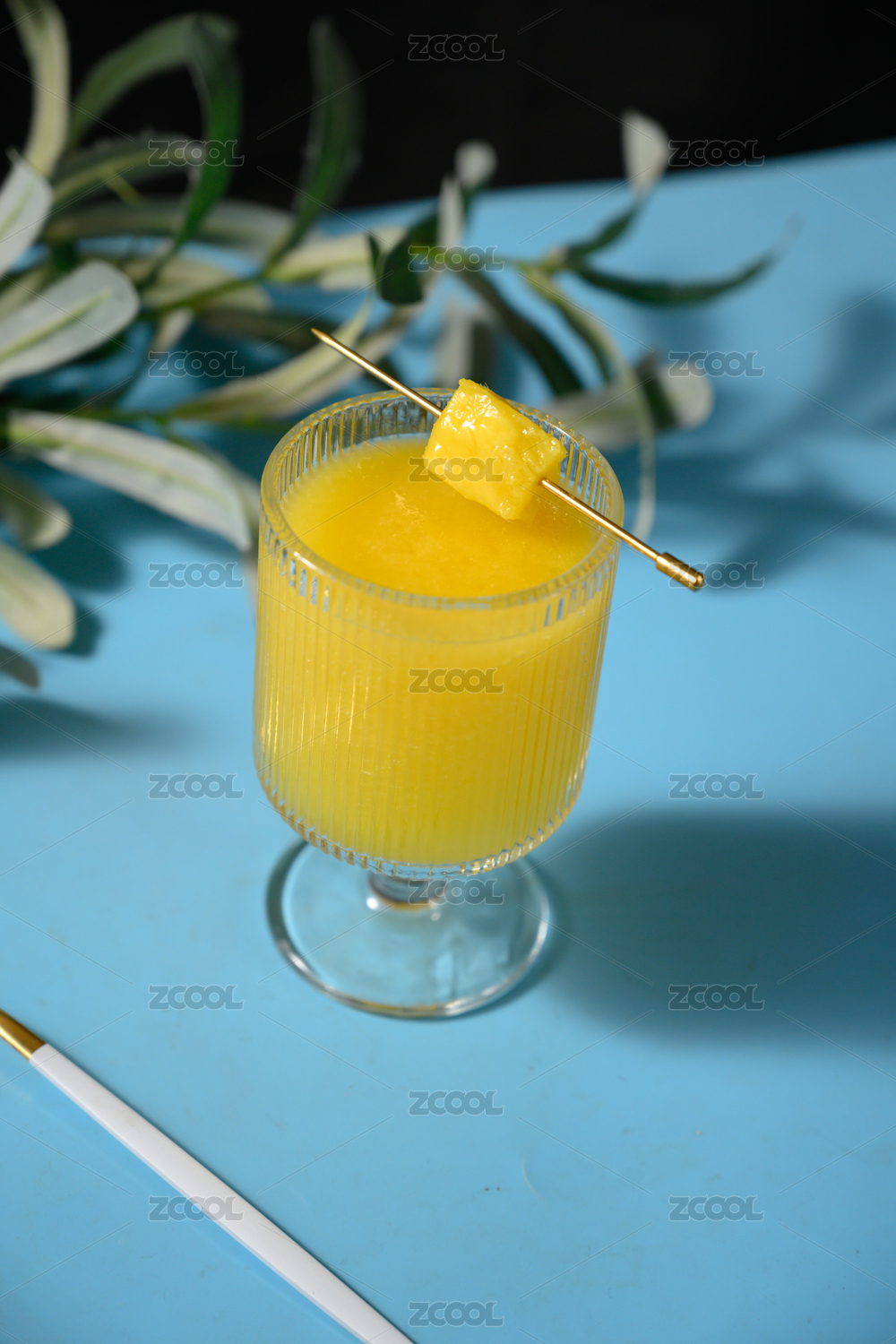 桌面上的杯子里的美味可口的芒果汁