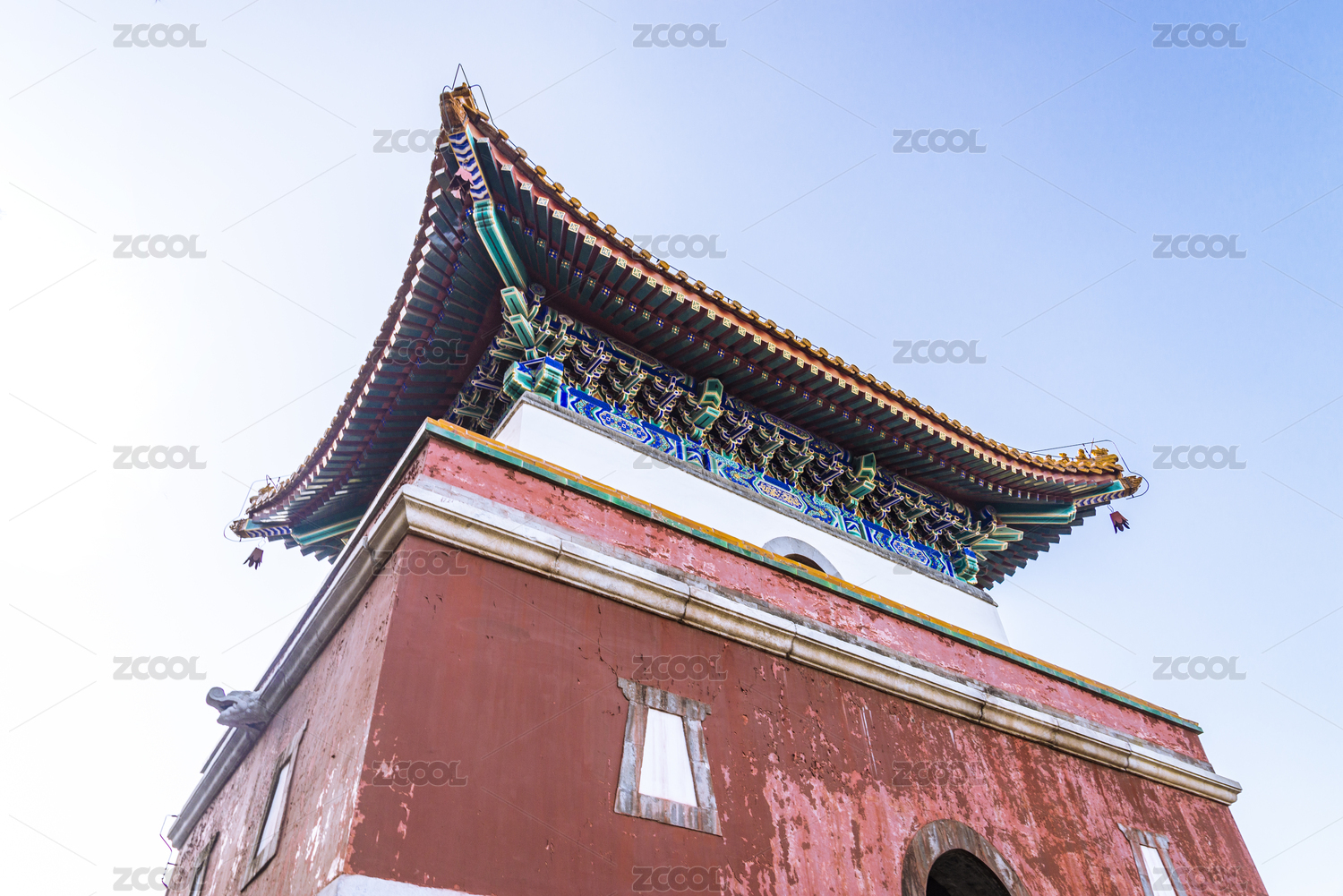 中国北京颐和园四大部洲红墙琉璃屋顶