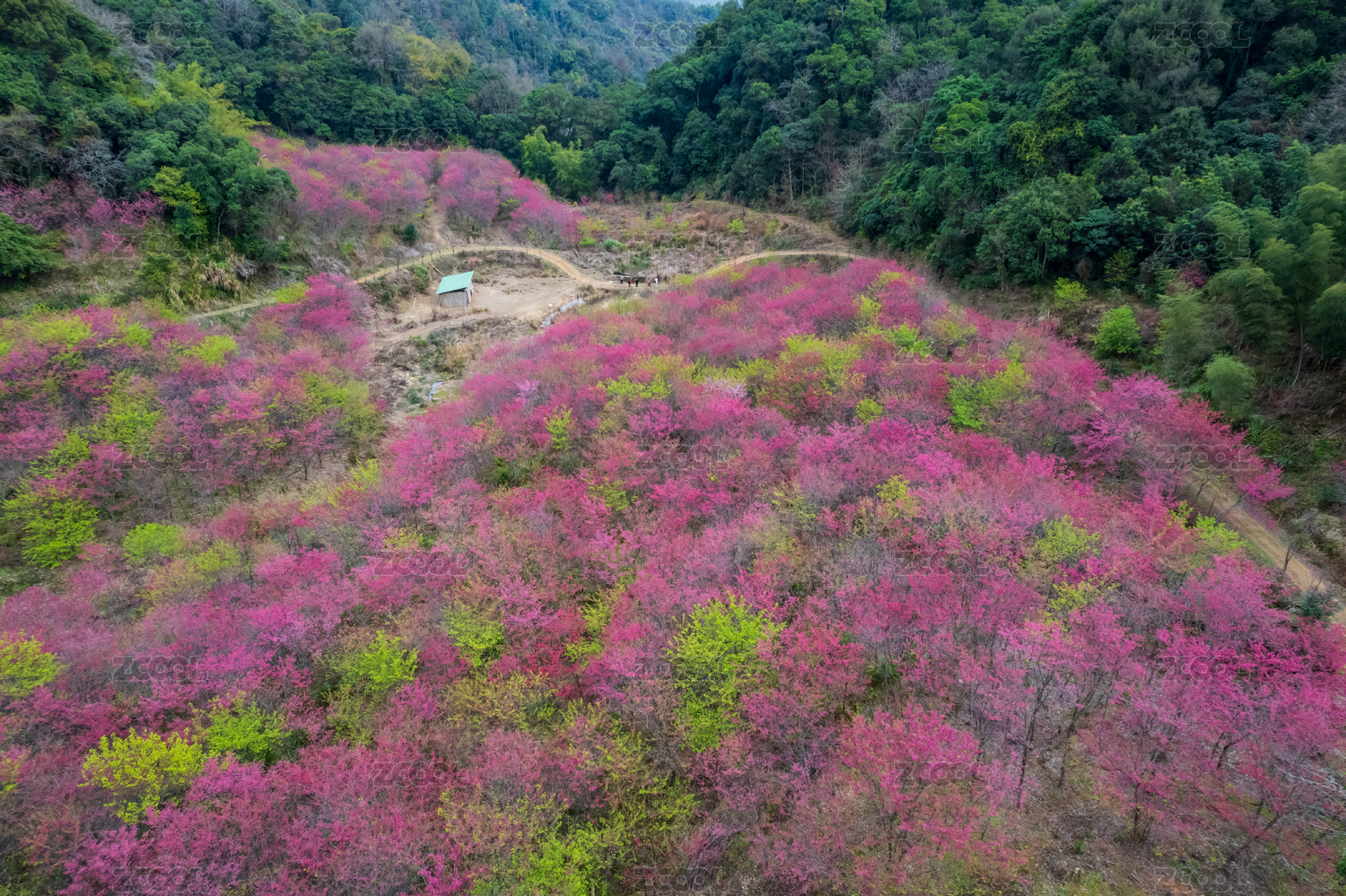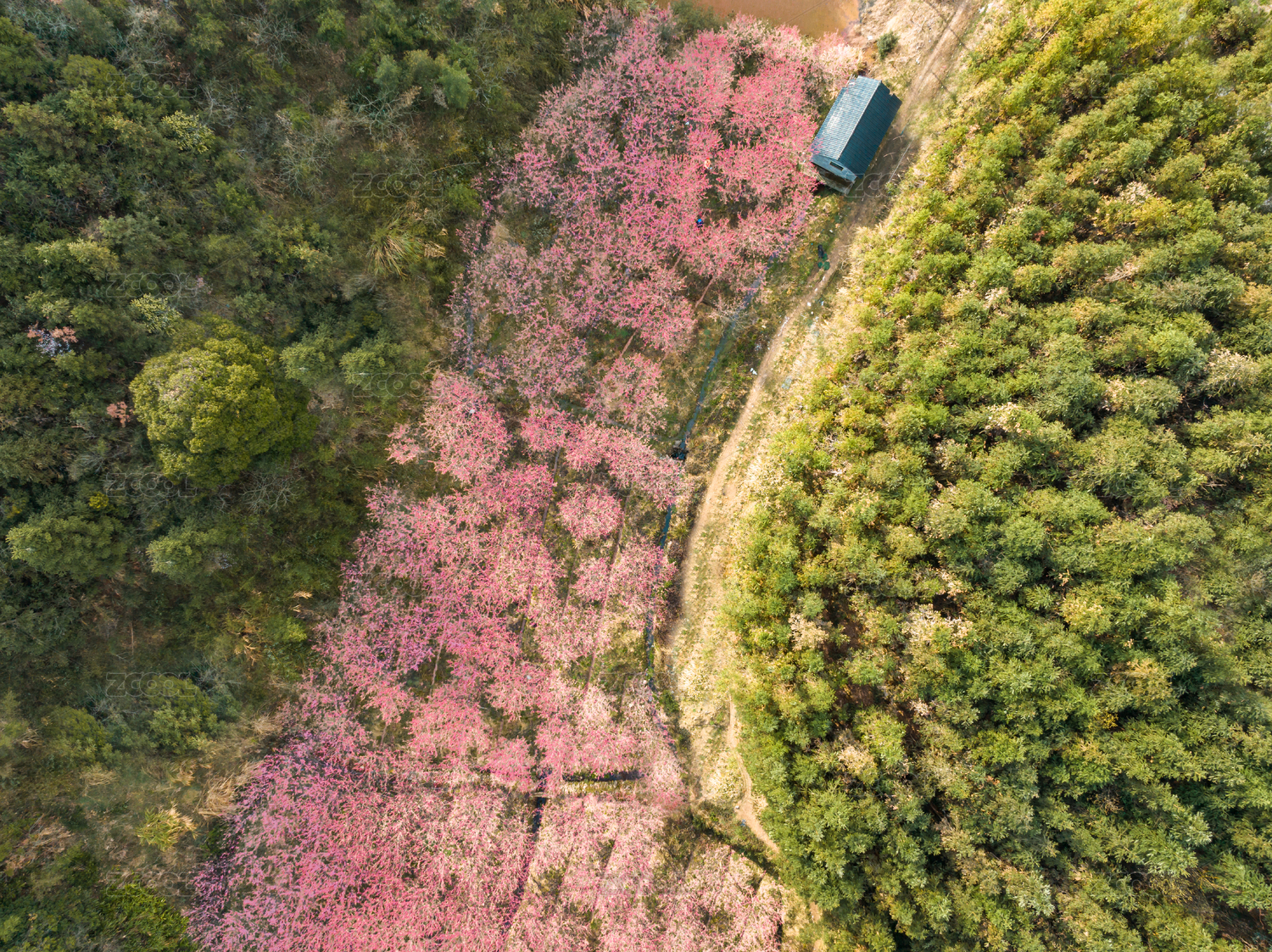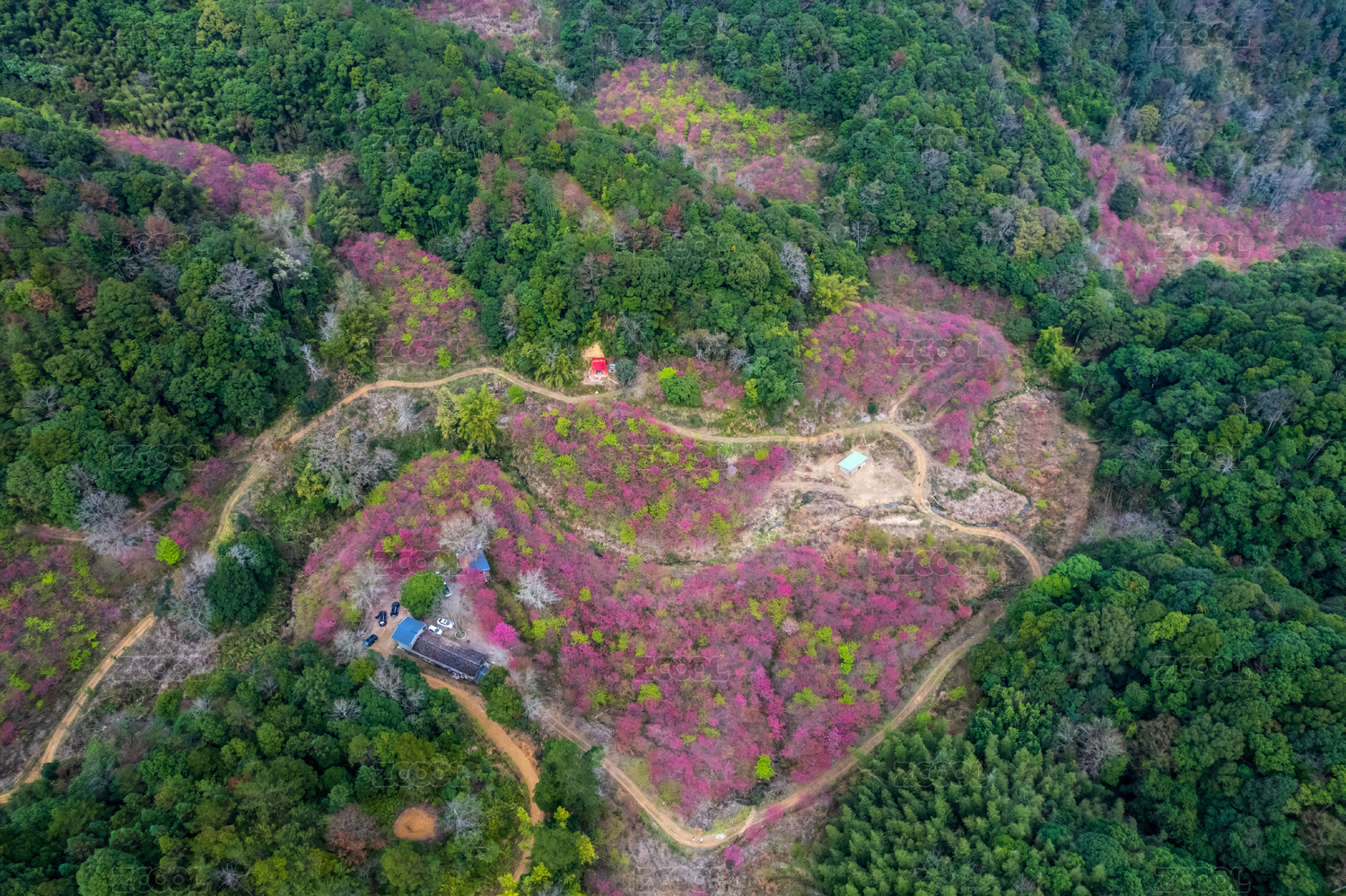 航拍中国江苏省南京明孝陵景区梅花山绽放的梅花