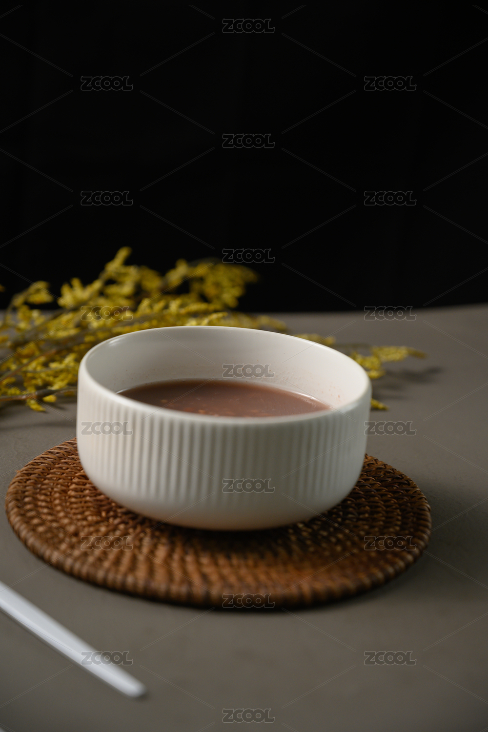 桌面上的碗里的美味可口的海带绿豆沙