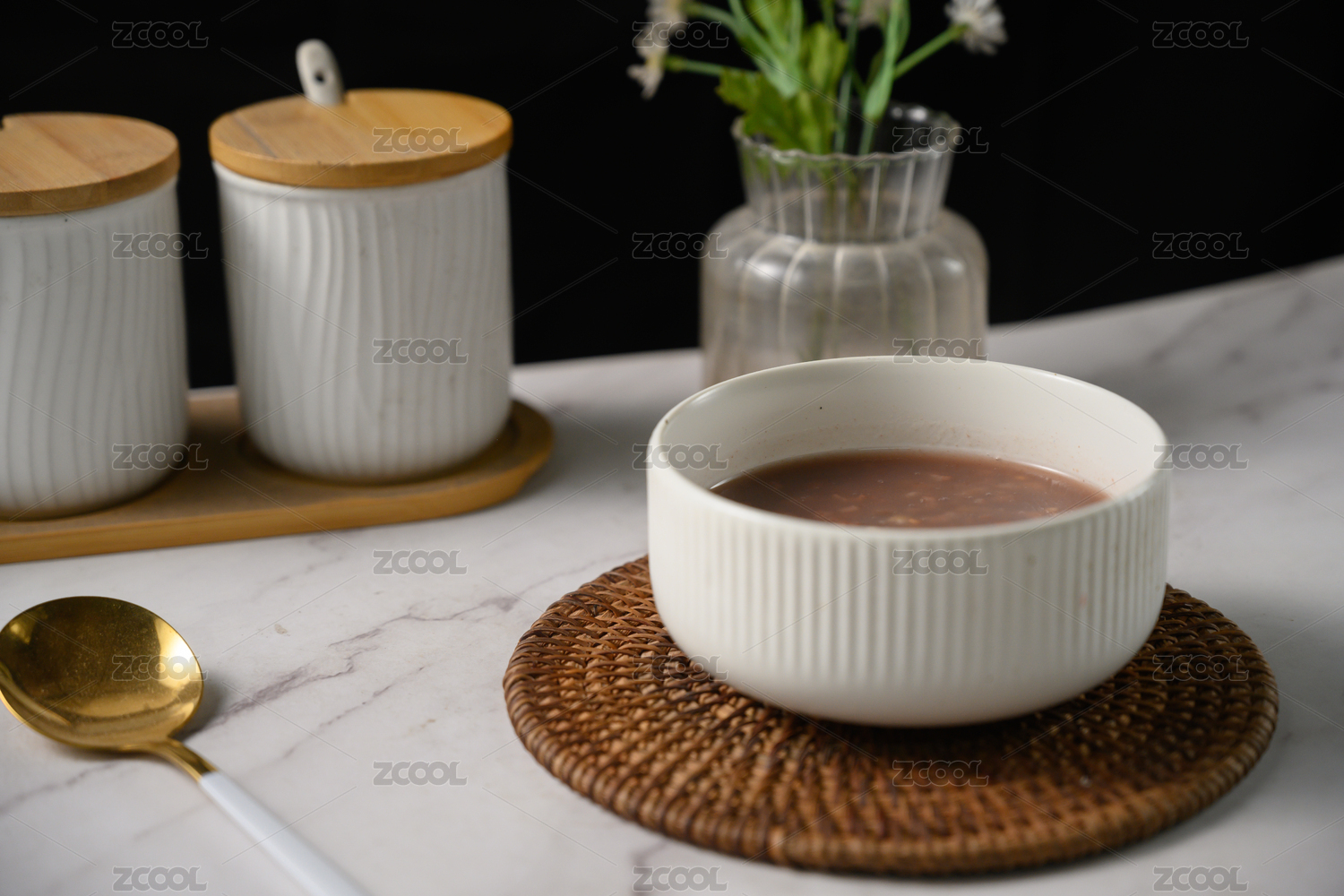 桌面上的碗里的美味可口的八宝粥