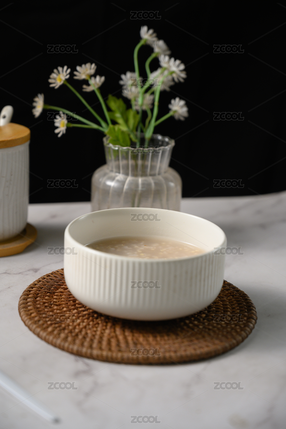 桌面上的碗里的美味可口的薏米小米粥