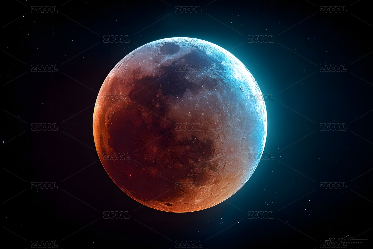 血色满月的月全食景象