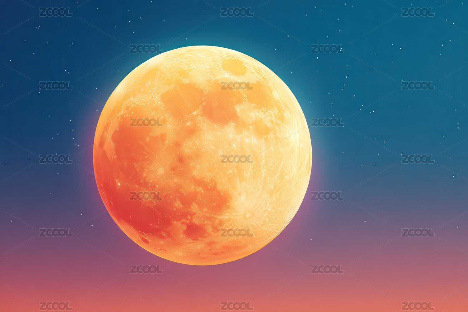 夜空中血红色的满月与闪烁的星星