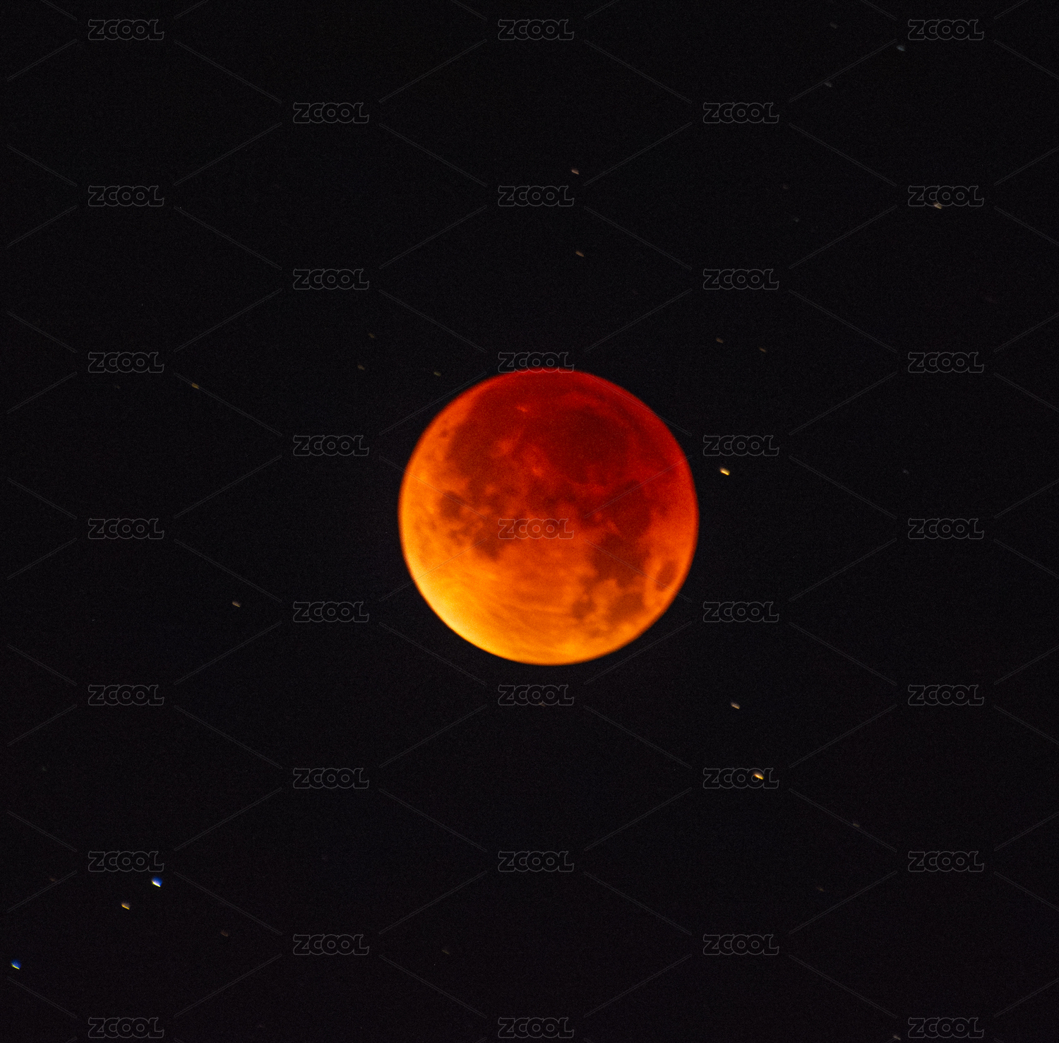 月全食的红月和满天的星点