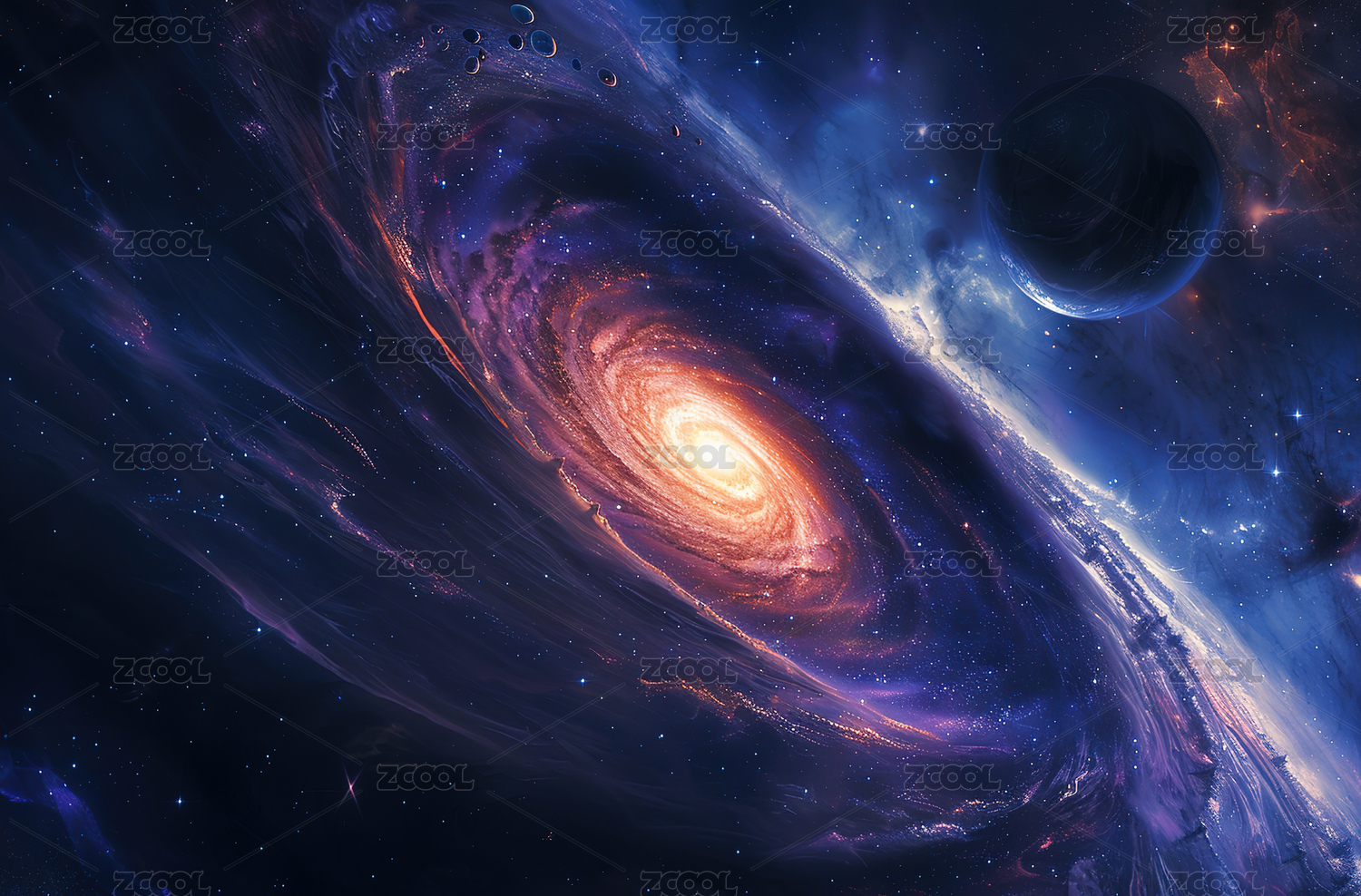 浩瀚宇宙中的螺旋状星系,星空黑洞星云