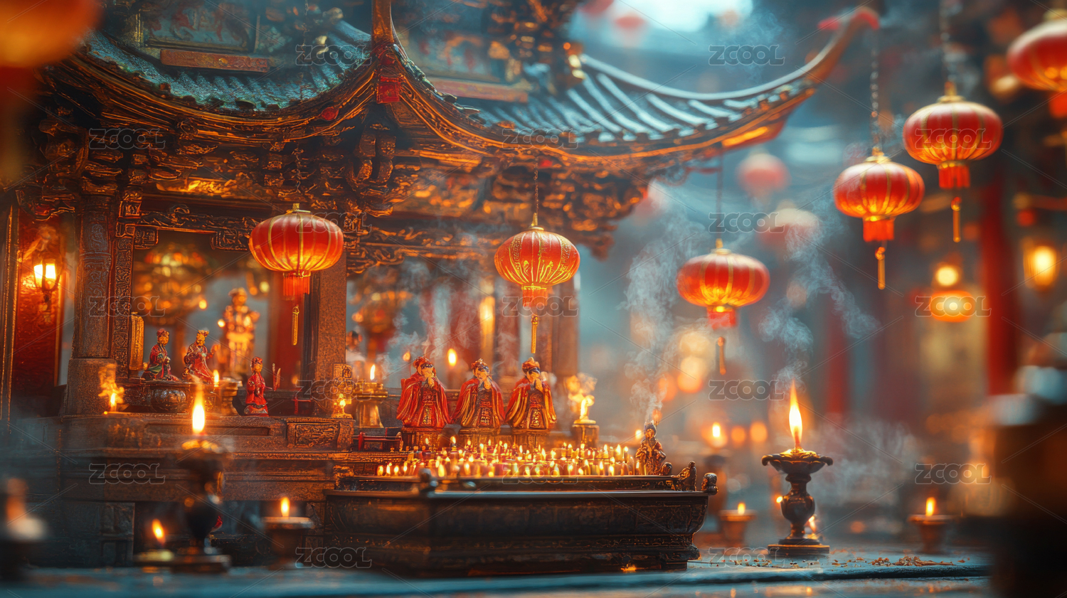 神秘殿堂内的香炉与烟雾