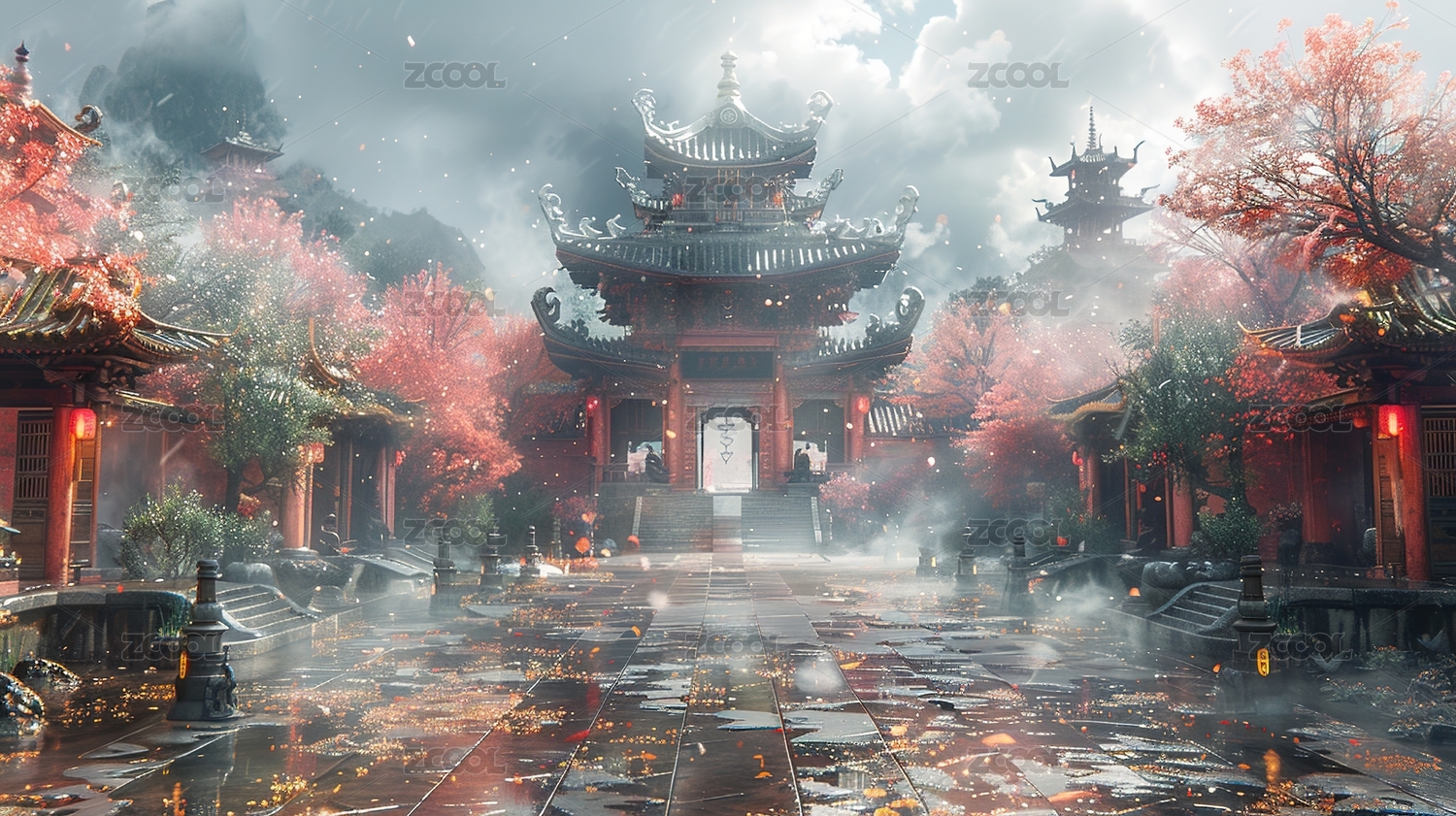 中国风天庭天宫建筑