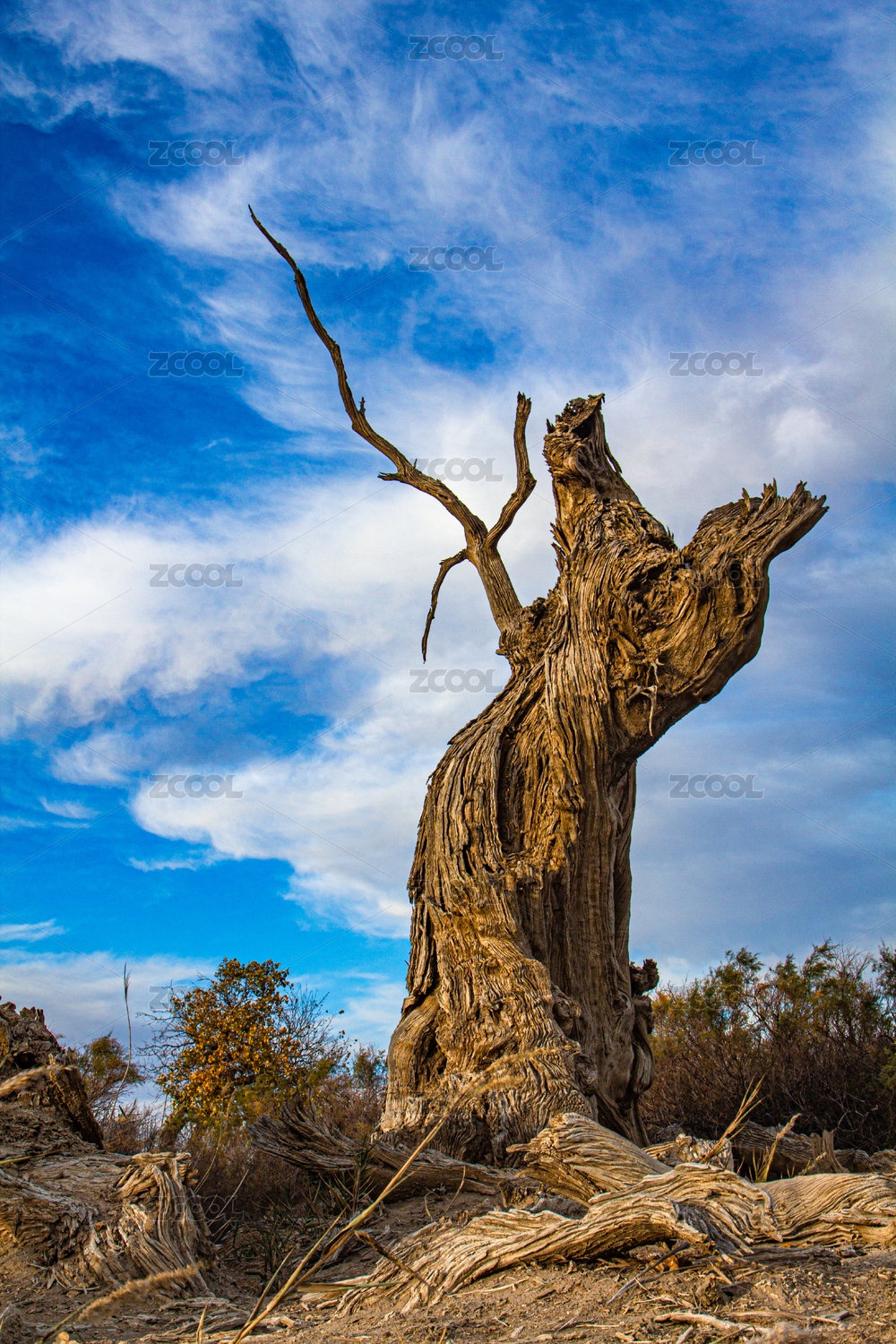 中国新疆布尔津县五彩滩上茯倒的胡杨树
