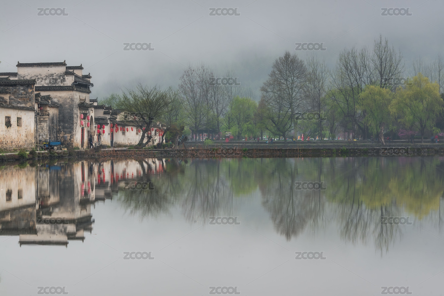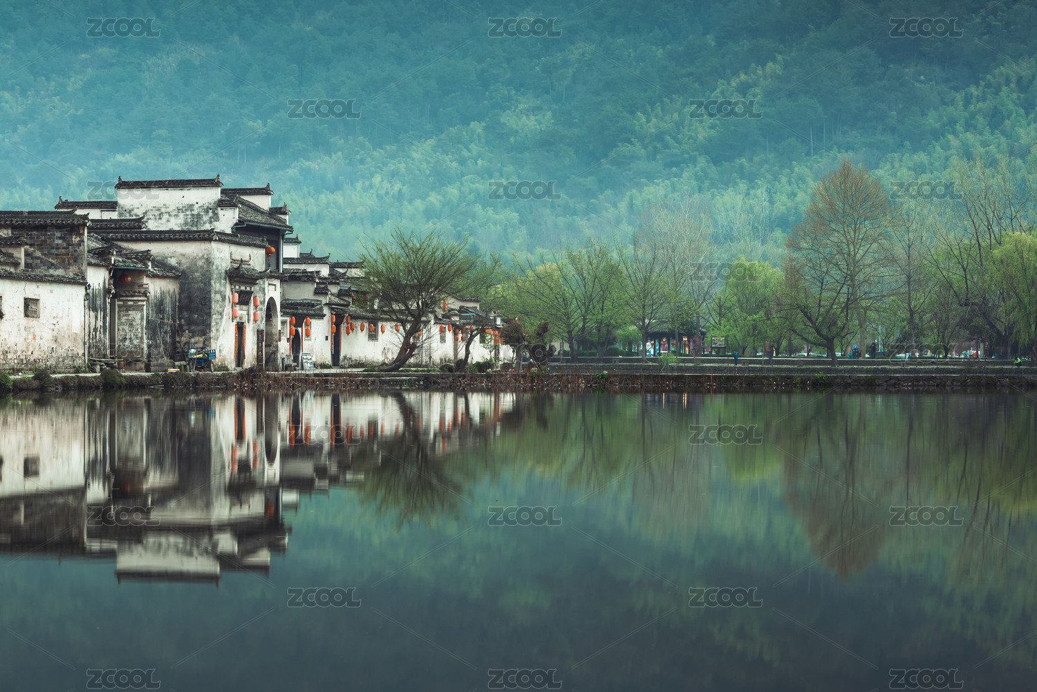 宏村,南湖,春季,春天,马头墙,徽派建筑,倒影,风光,乡村,风景