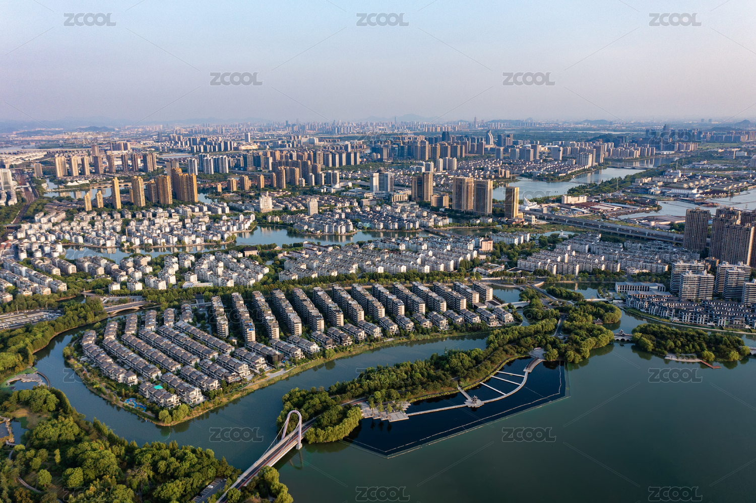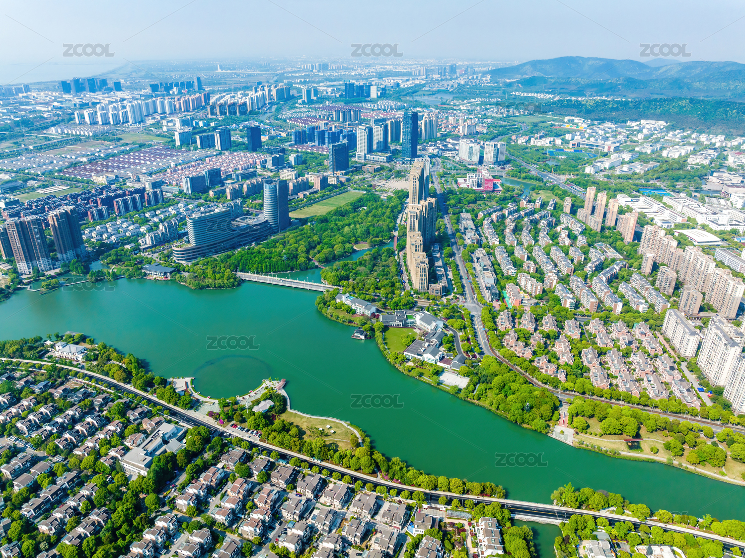 中国江苏苏州独墅湖月亮湾航拍