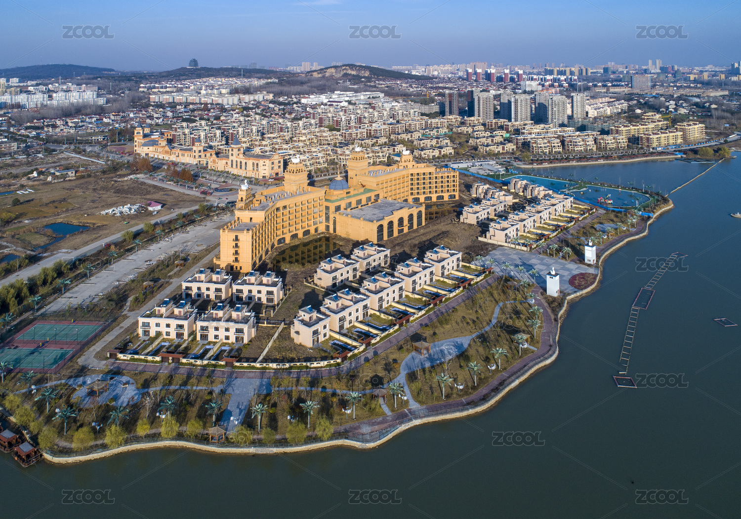中国江苏省盱眙县天鹅湖畔城市风光