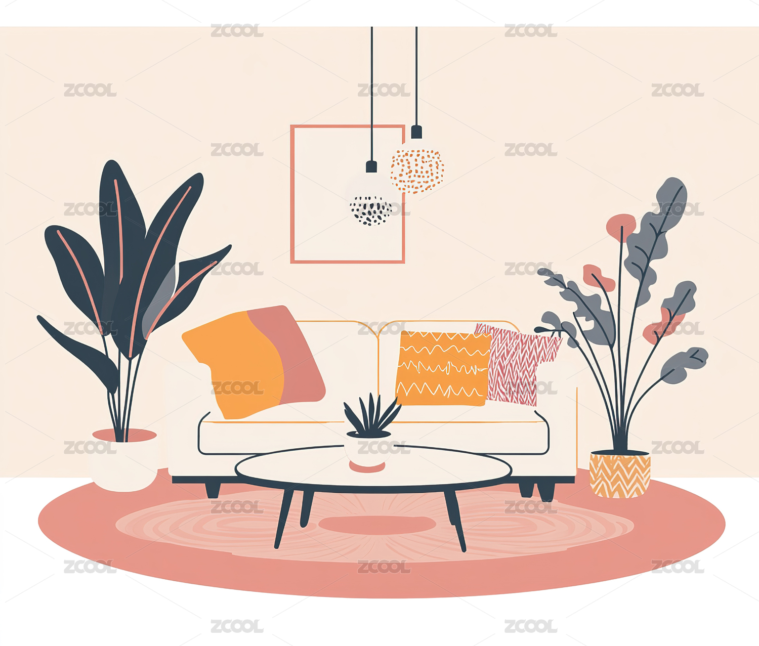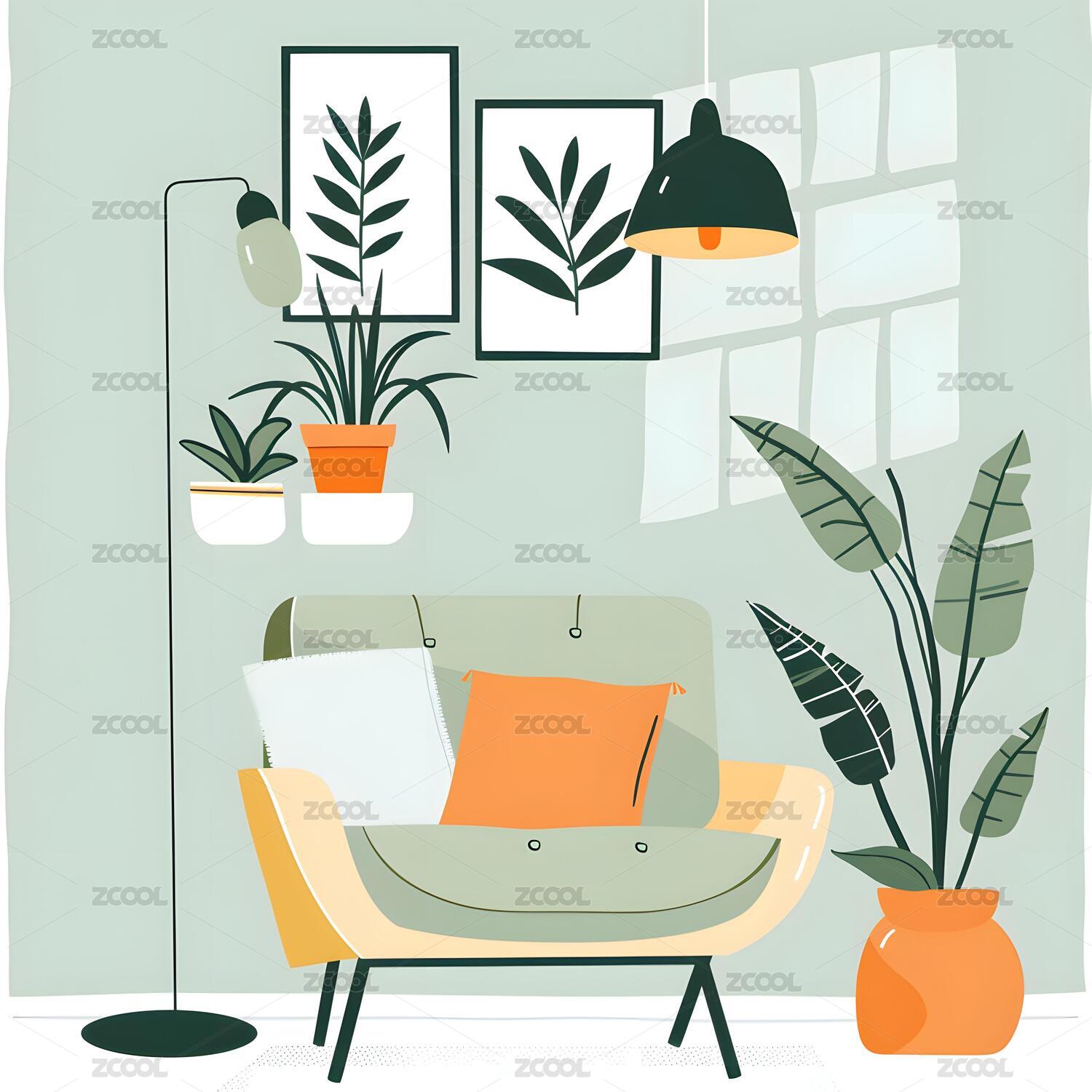 线条,色块,简笔画,室内,生活,悠闲,杂志,杂志风,可爱,少女