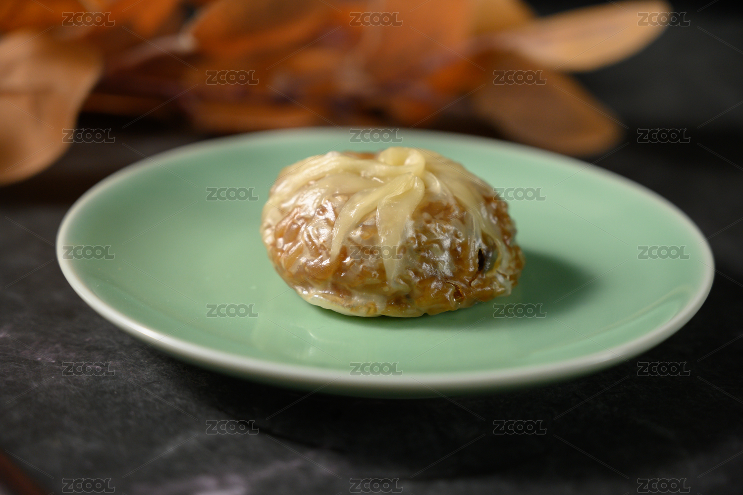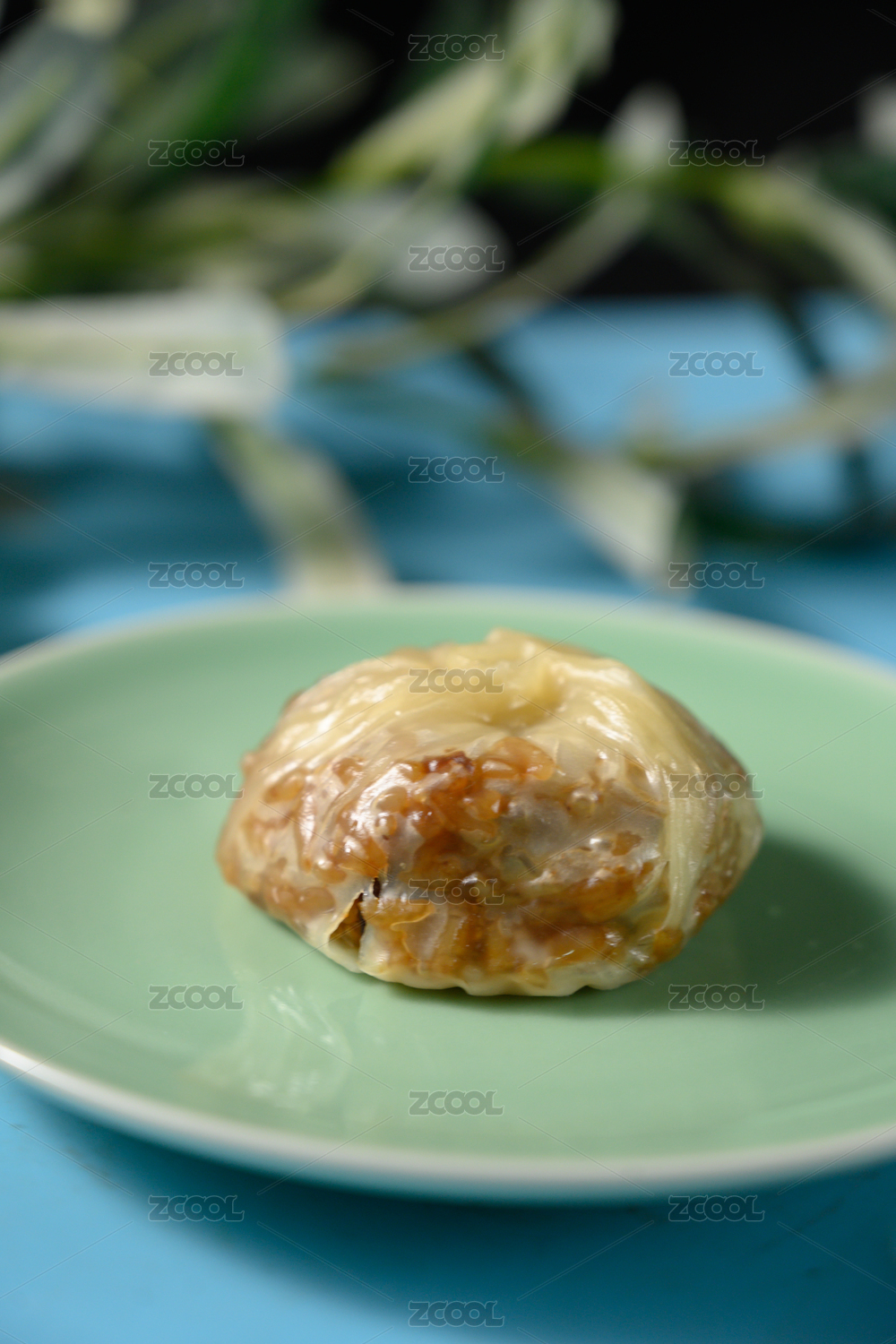 桌面上的盘子里的美味可口的纸皮烧卖