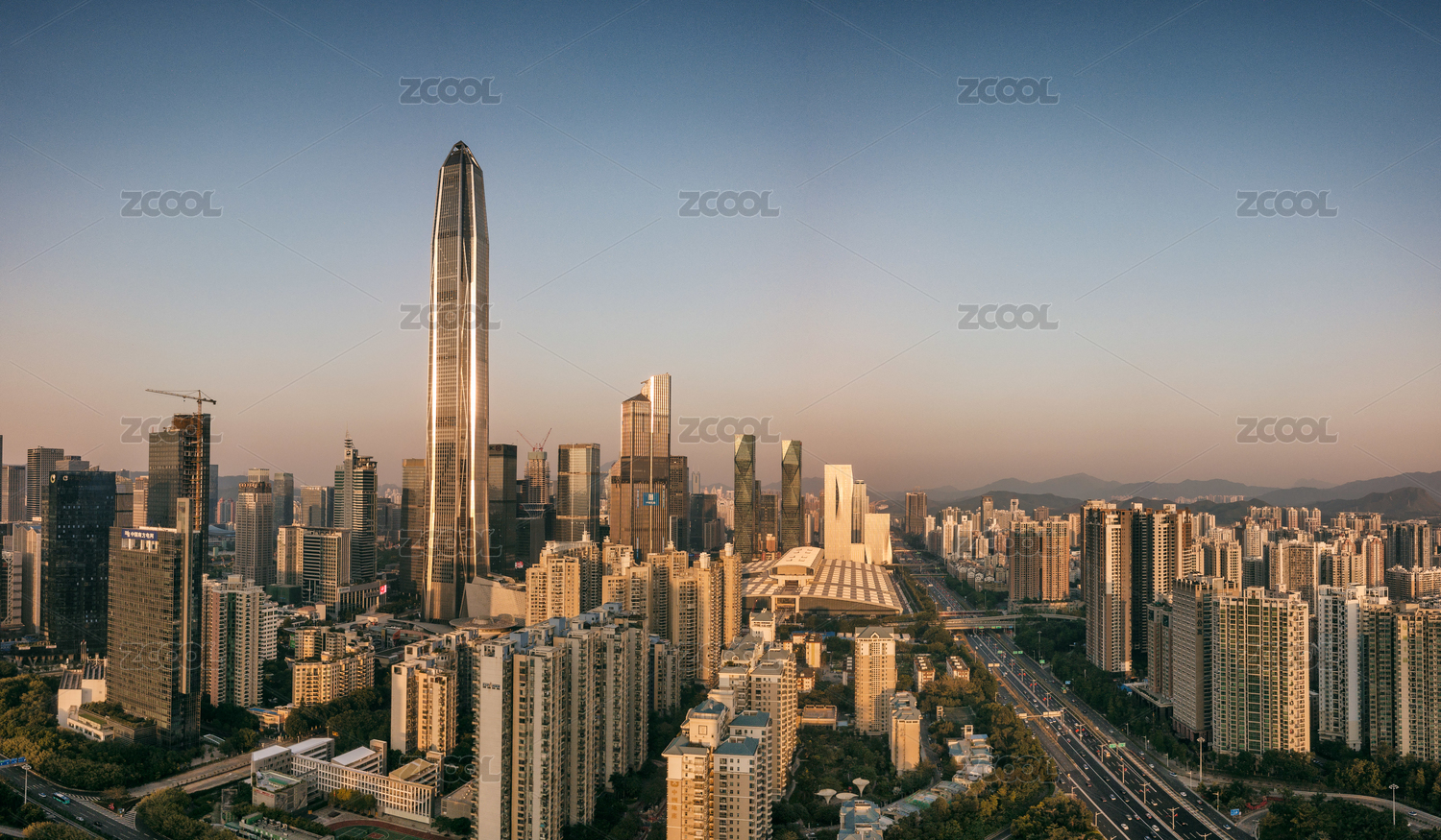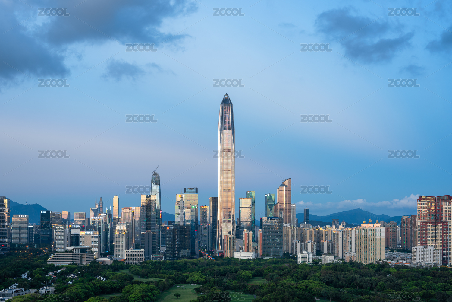 中国深圳平安金融中心天际线建筑群高楼大厦傍晚风光