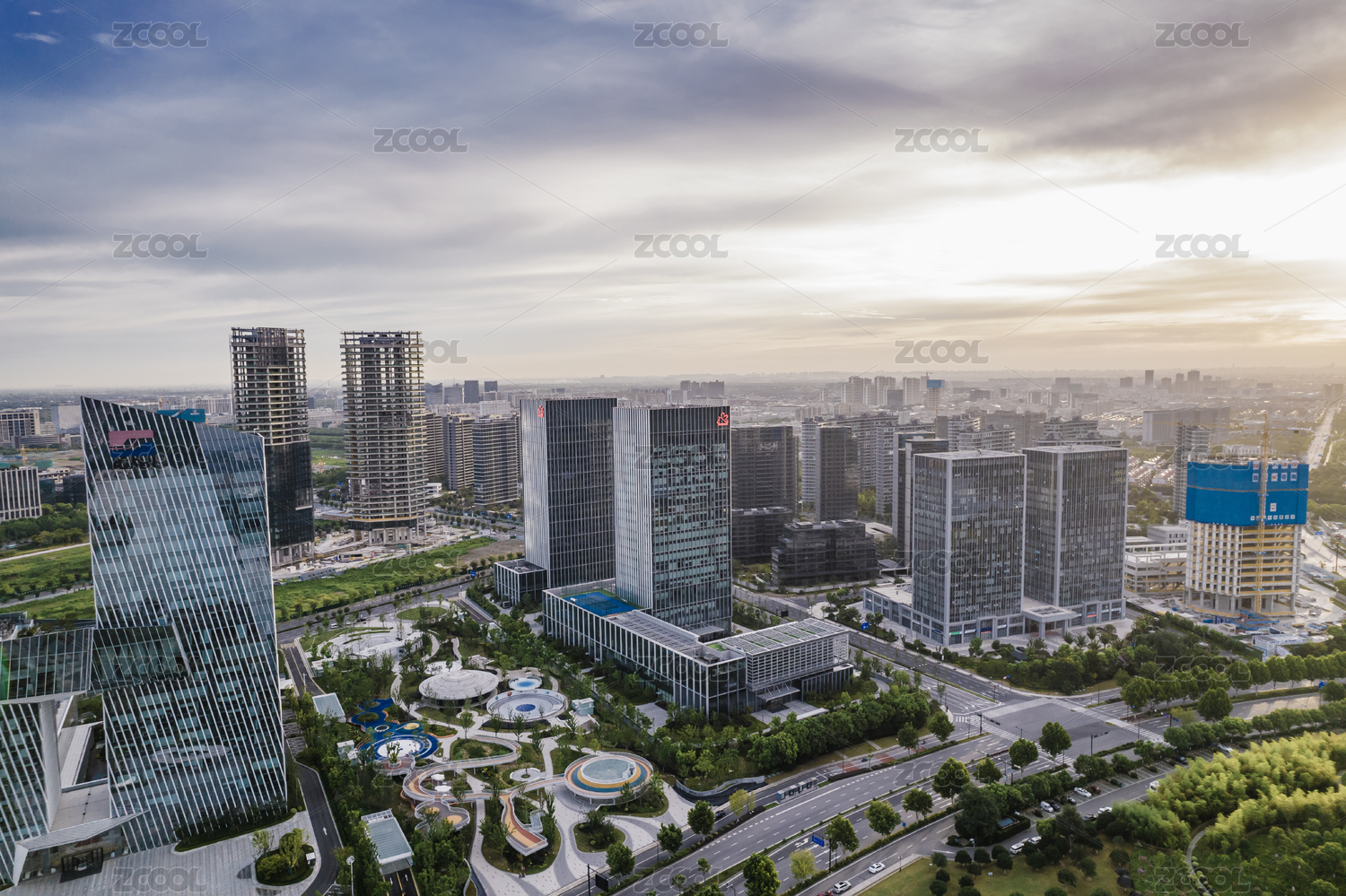 航拍淄博CBD中央活力区特写