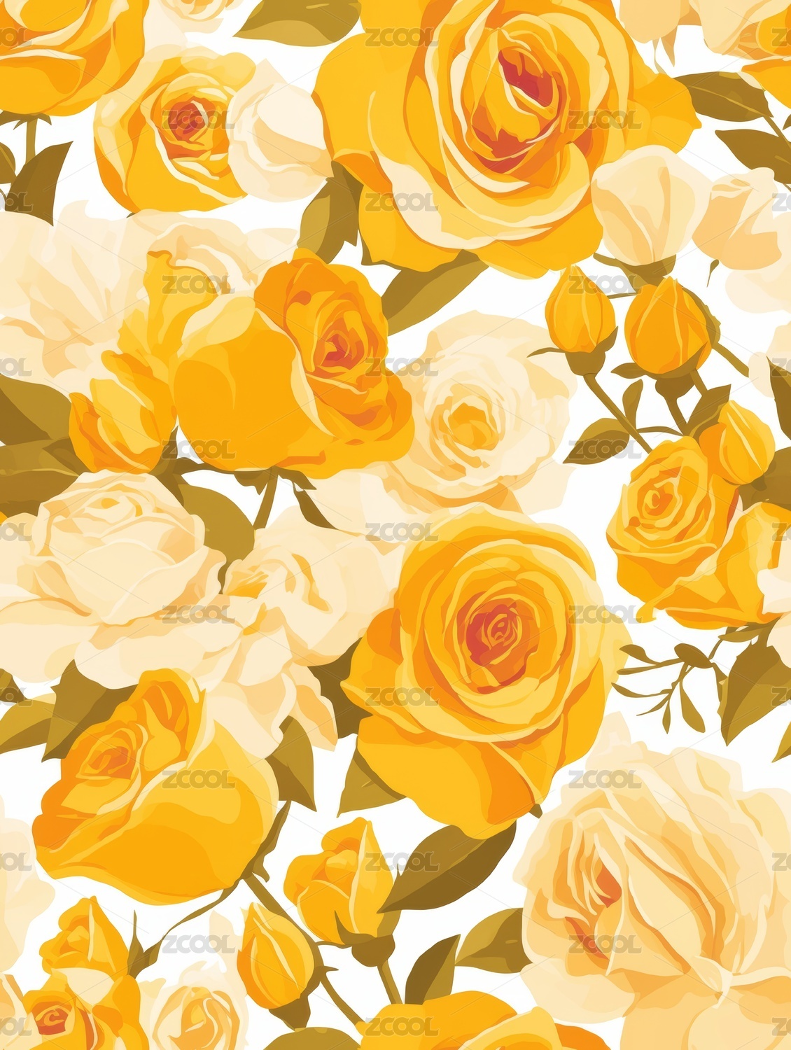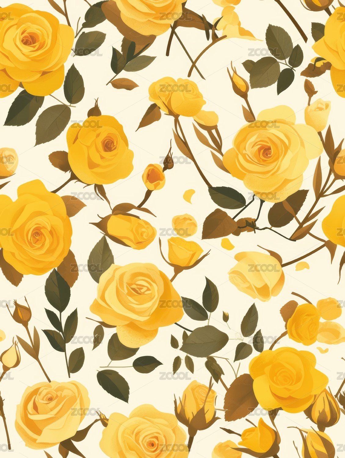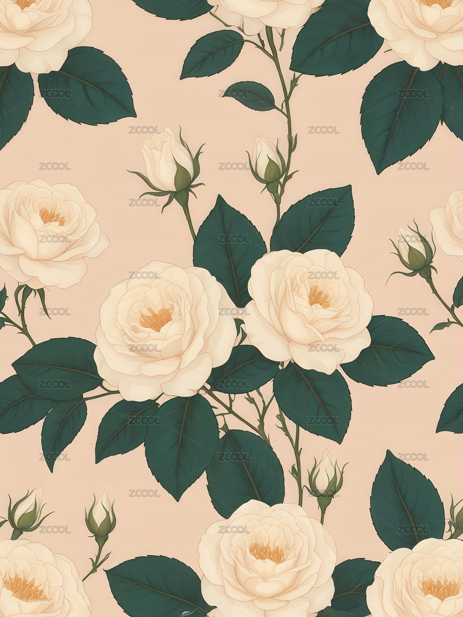 四方连续植物花卉月季花图案