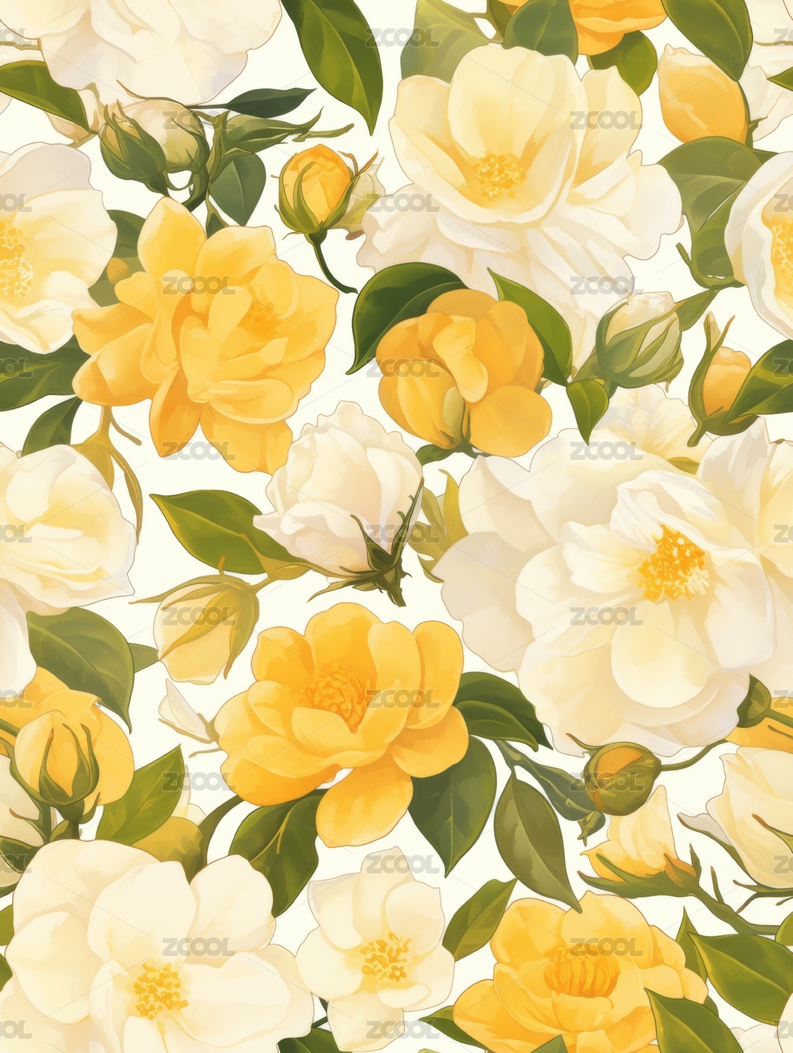 四方连续图数码花卉