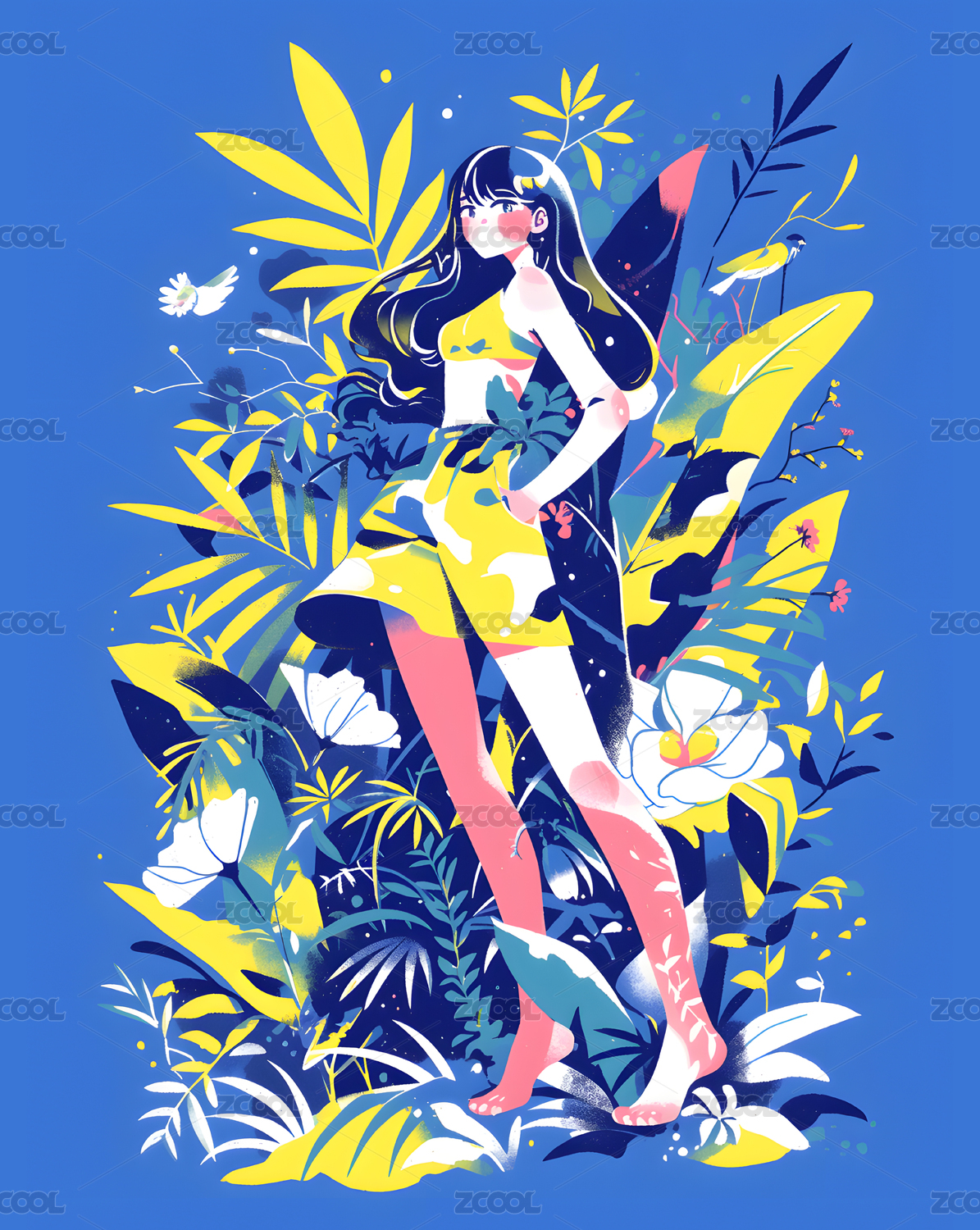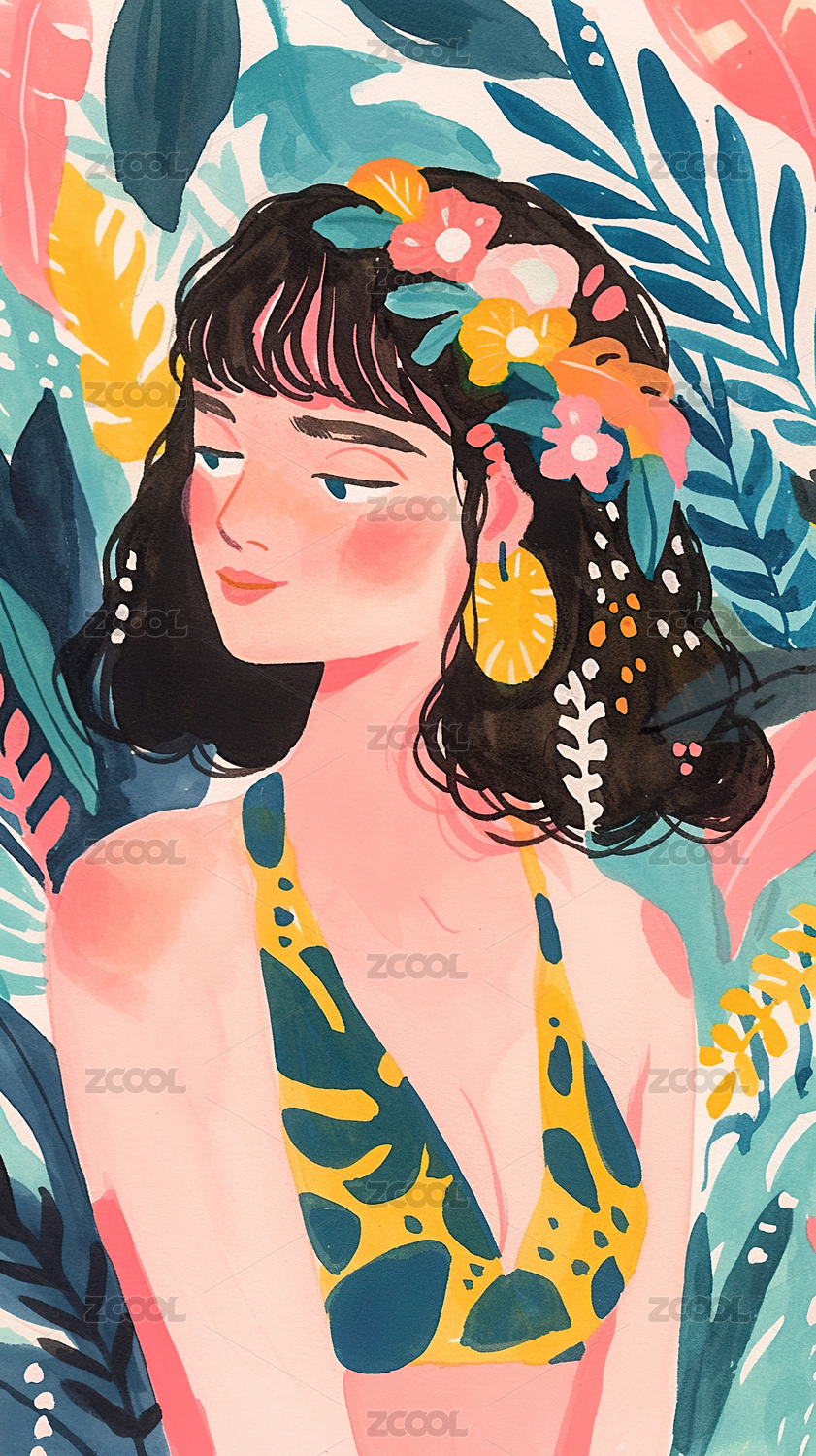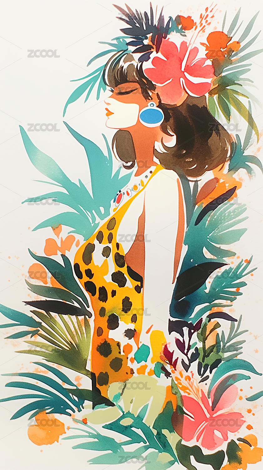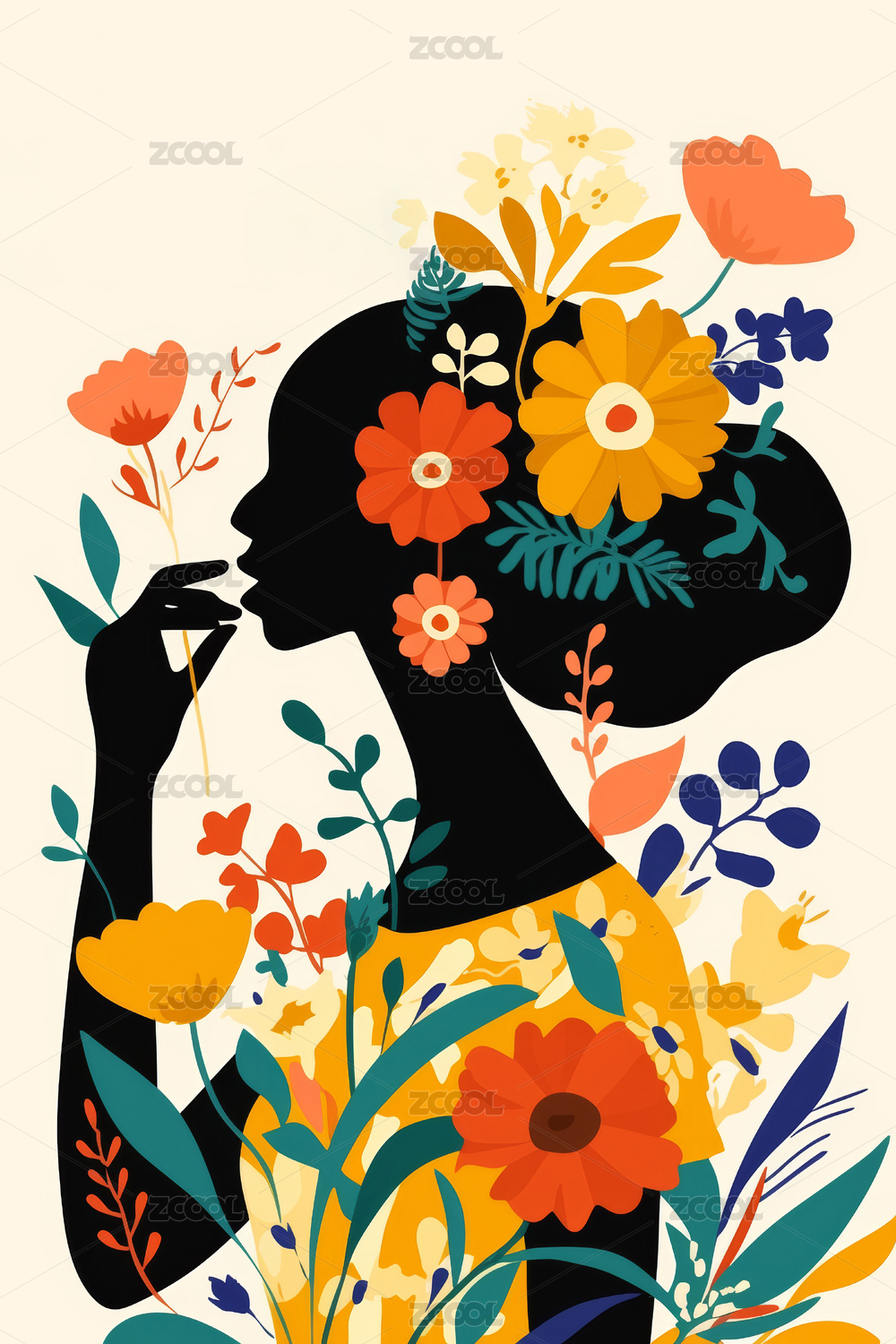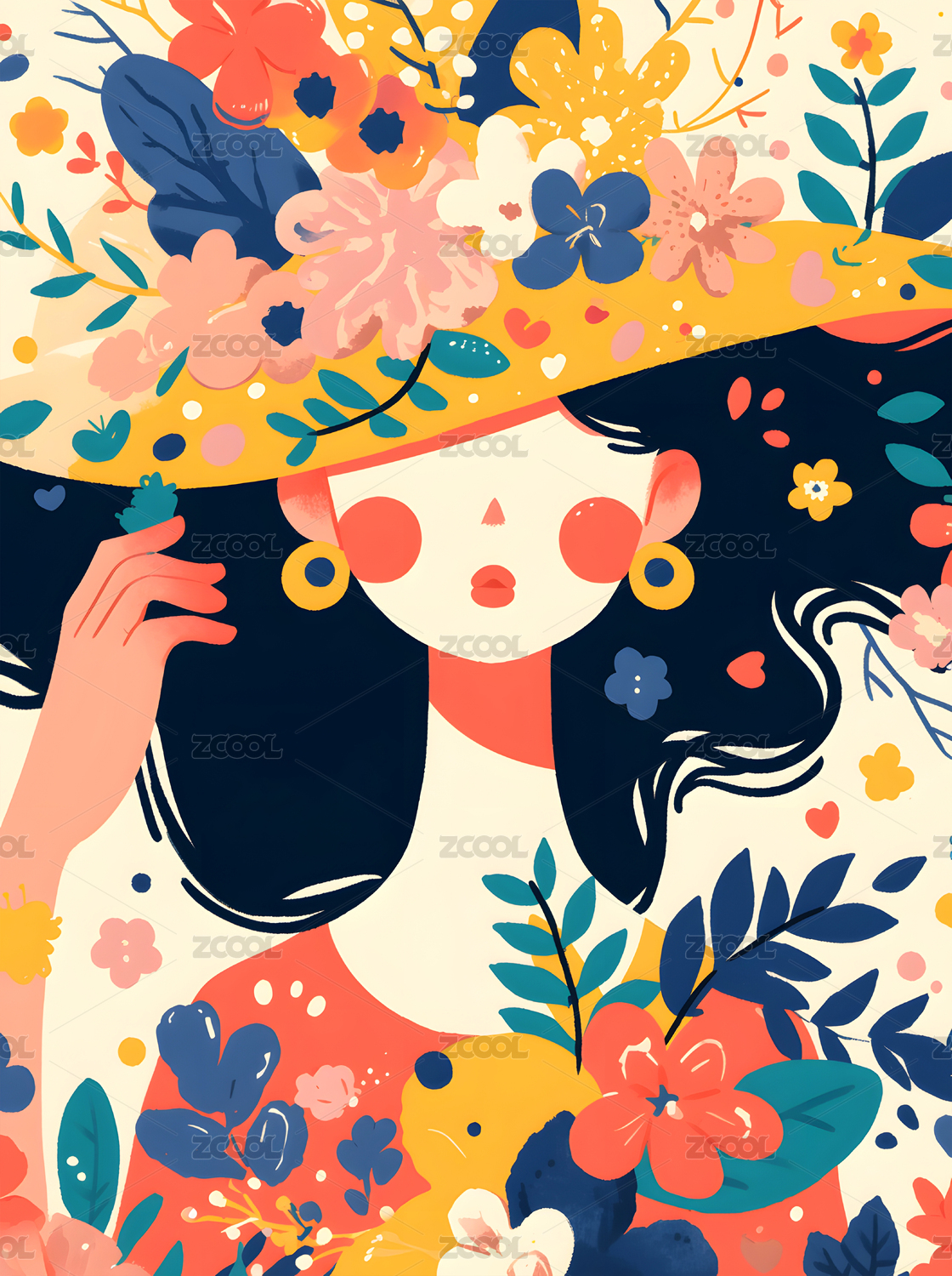 AIGC202404,少女,植物,花卉,装饰画,装饰,包装,插图,复古,插画