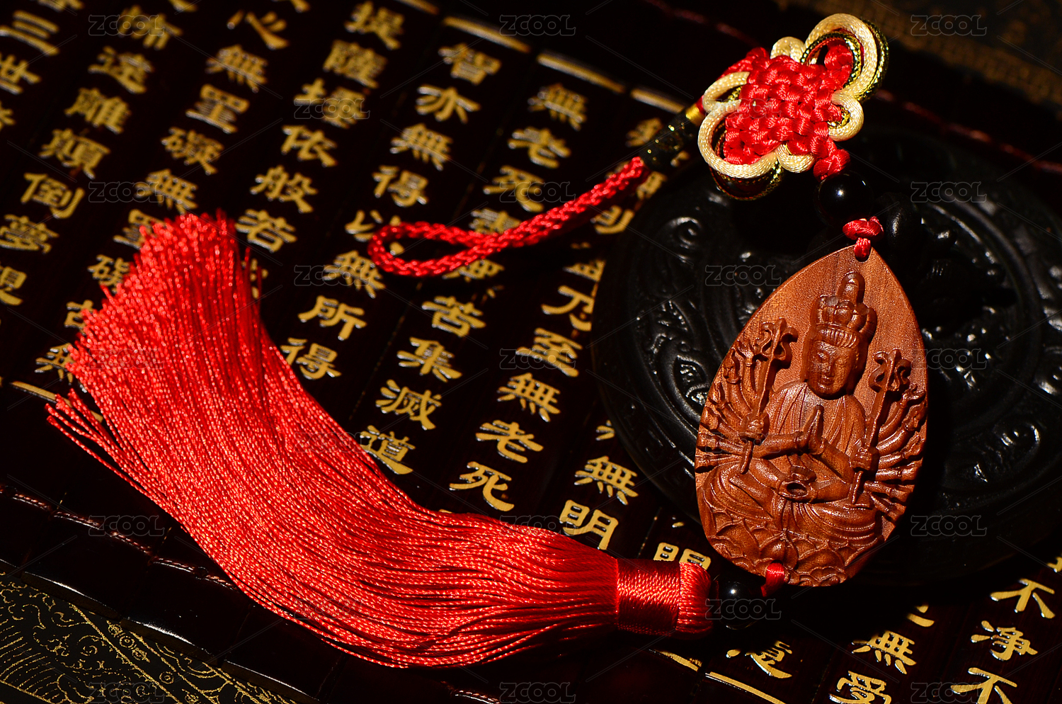心经竹简背景上的阿弥陀佛像桃木汽车挂件