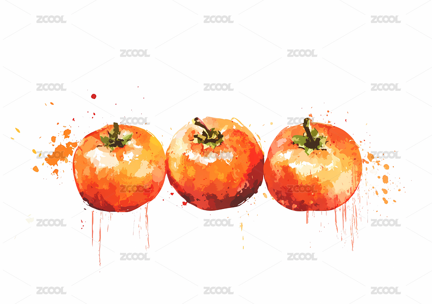 水彩,水果,插画,特写,果实,秋天,绘画,柿子,红柿子,水墨