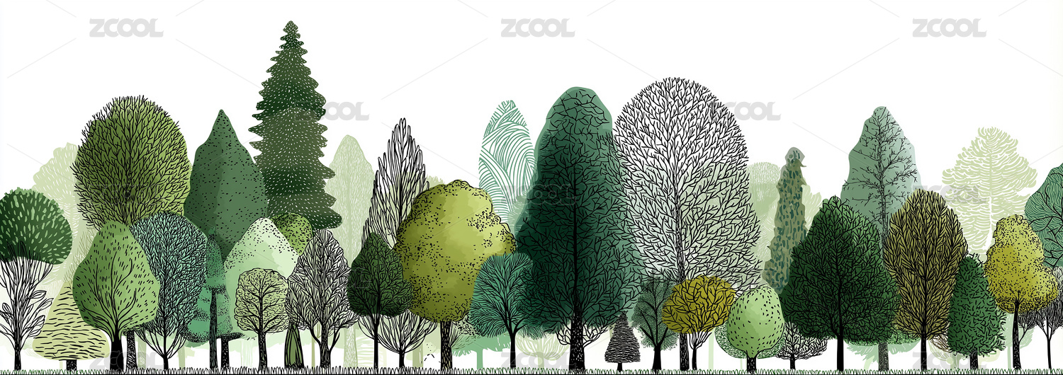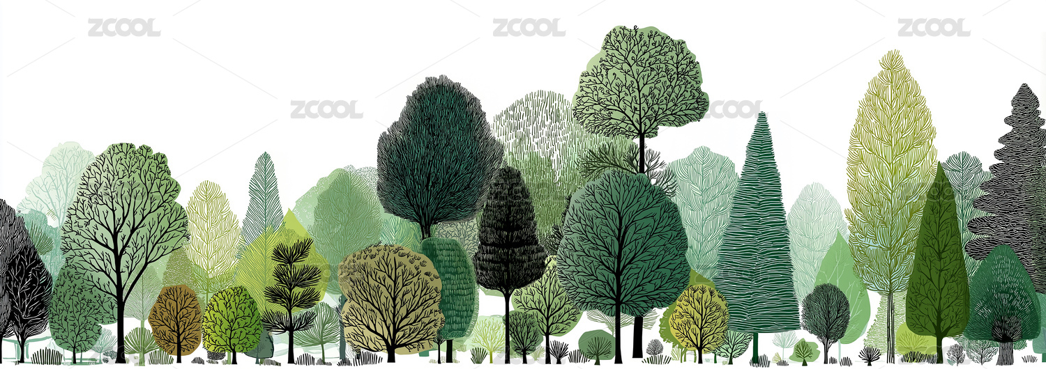 扁平风森林树木插画装饰画背景素材