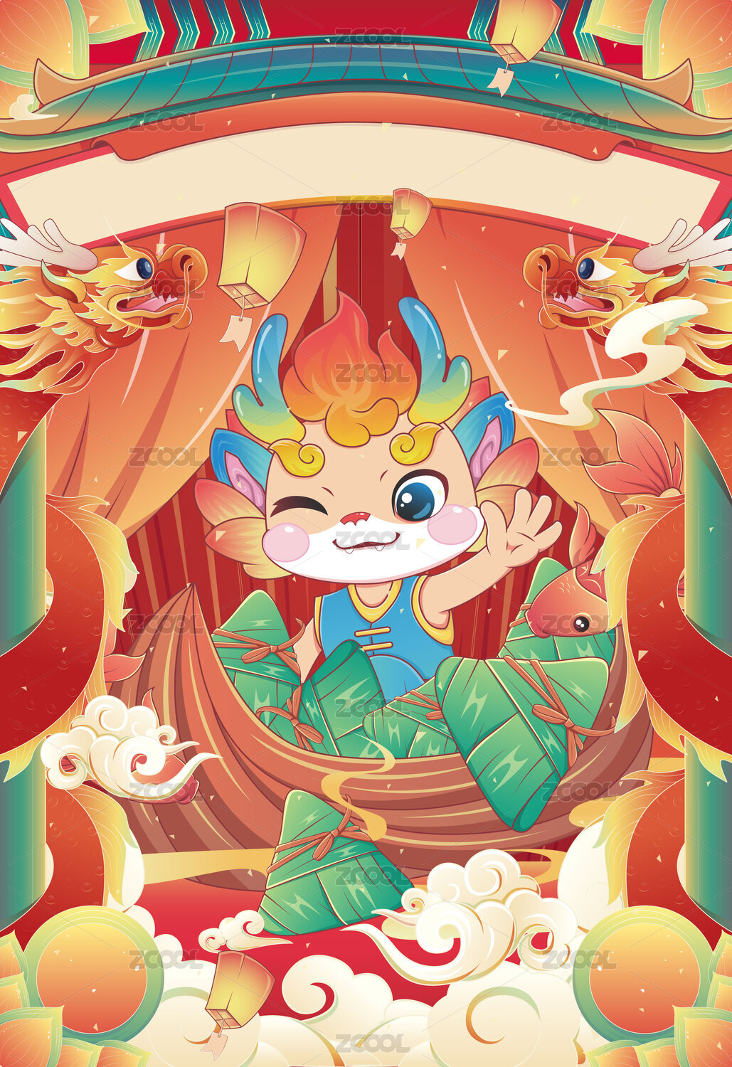 2024龙年矢量原创新年插画龙舟祝福