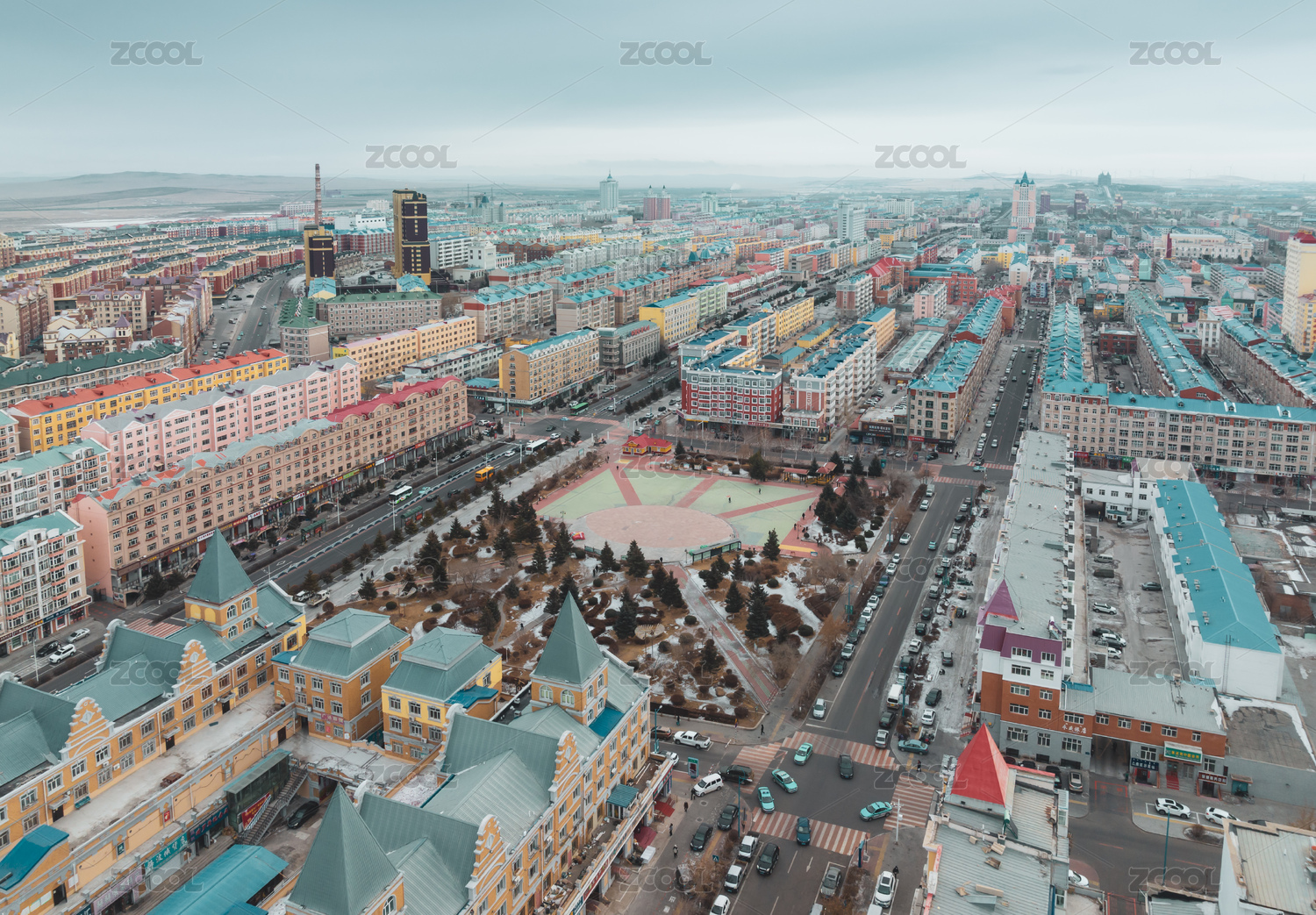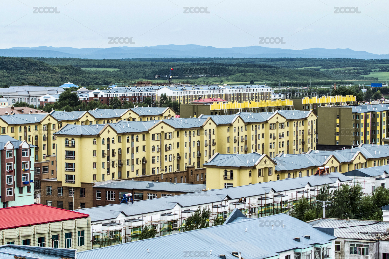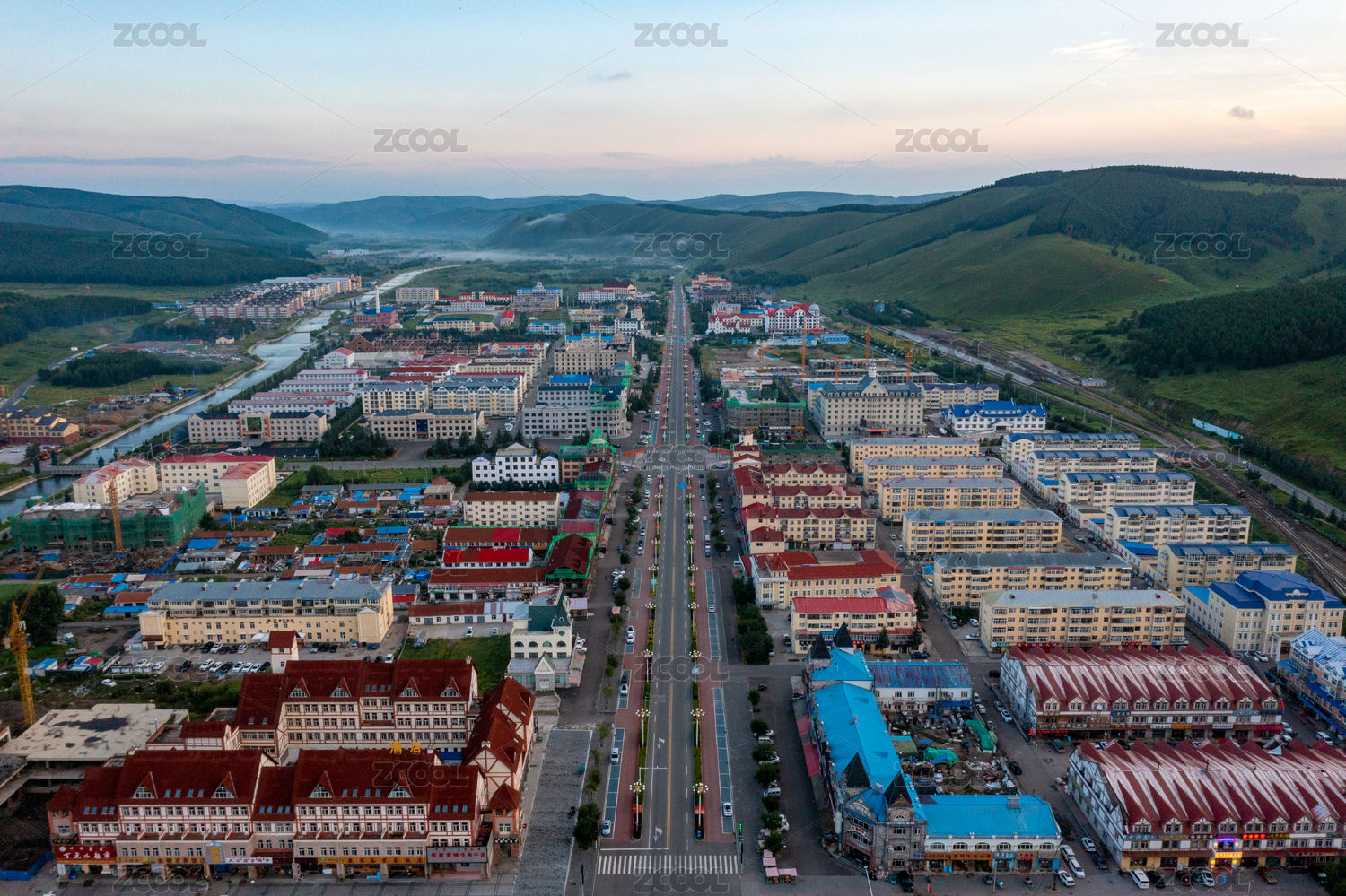 内蒙古呼伦贝尔额尔古纳城市建筑航拍风光