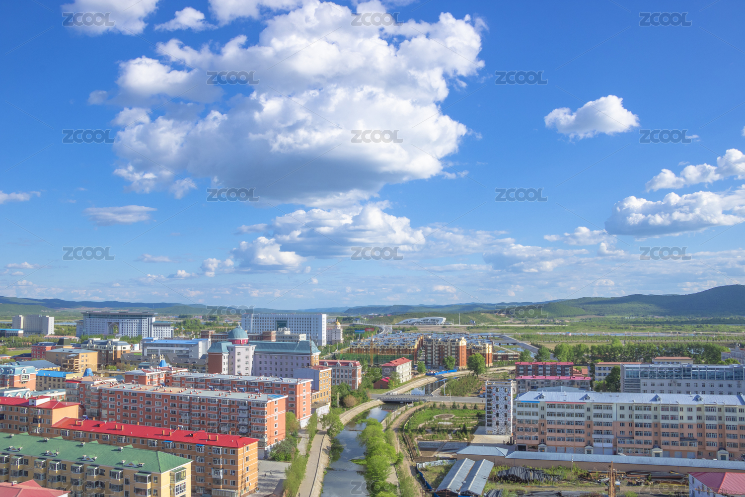 晴朗天气中国内蒙古兴安盟阿尔山市城市风光