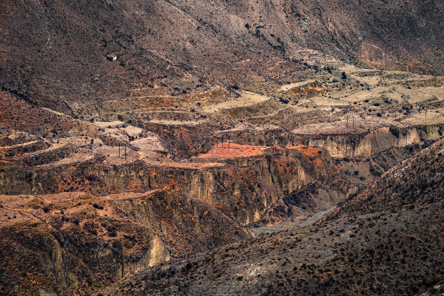 中国新疆帕米尔高原河谷边坡上的沟堑