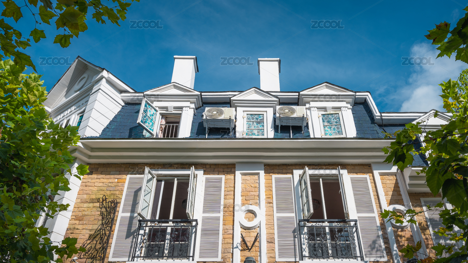 欧洲小镇风格建筑窗户阳台