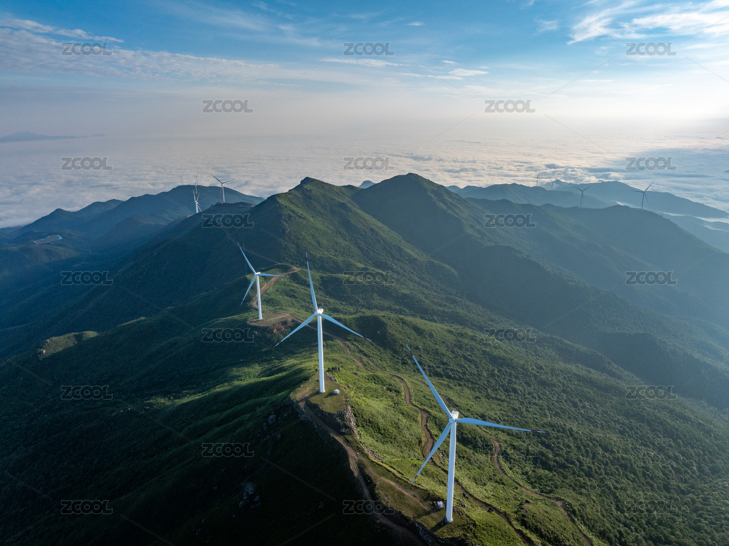 江西靖安九岭尖高山上的风力发电设备