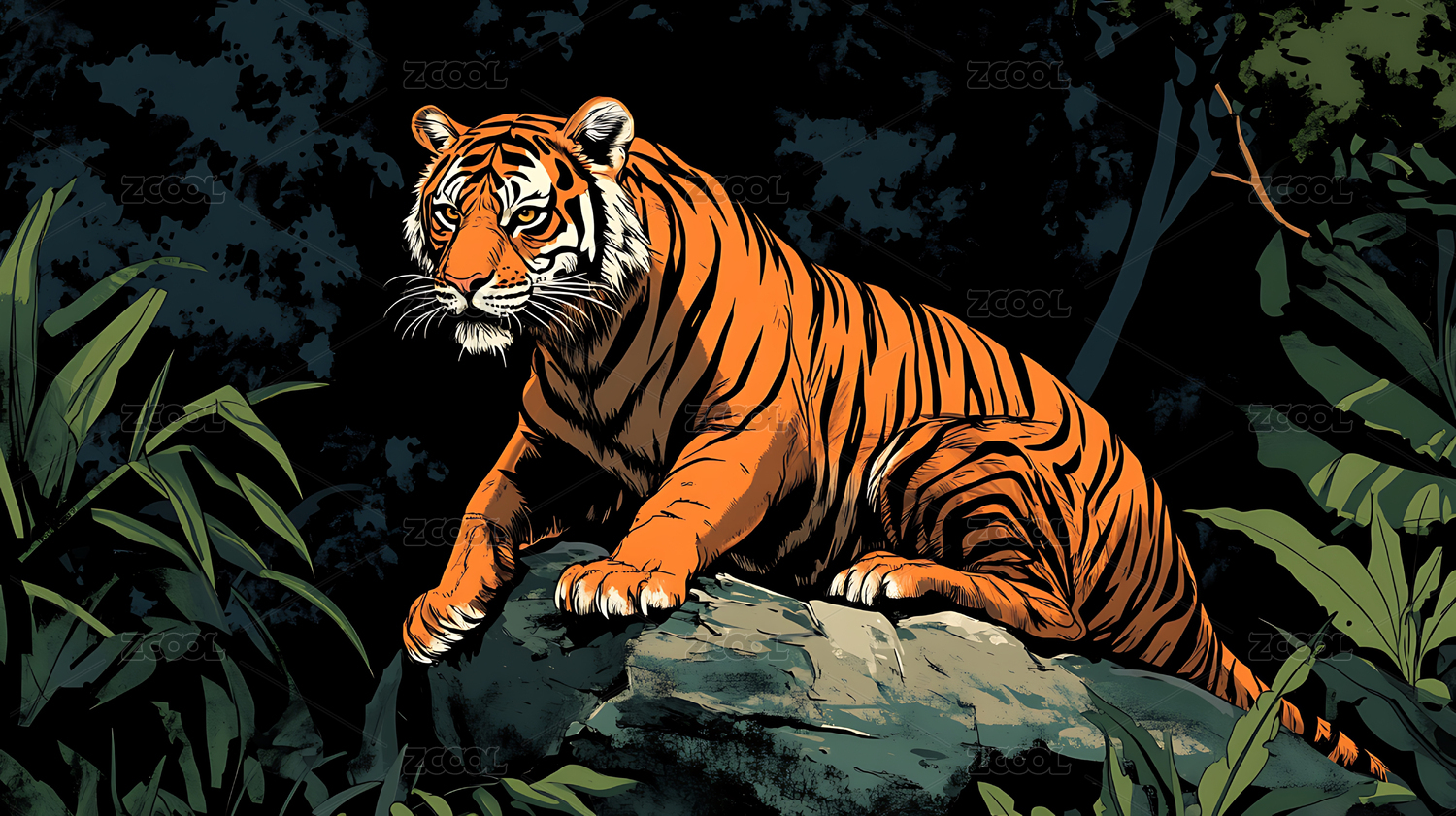 复古动物老虎插画