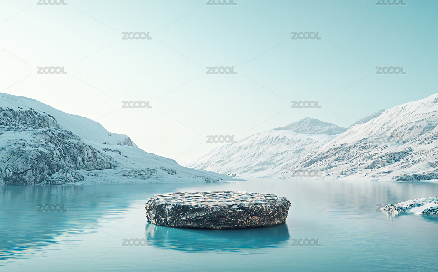 冰雪水面上的白色圆形展台