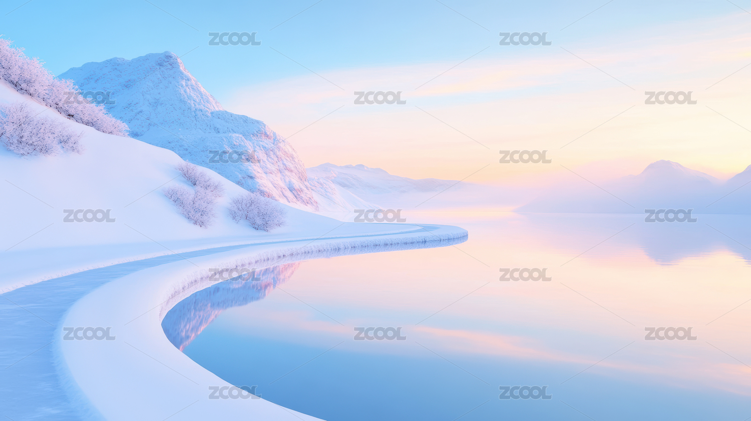 冬日宁静的河流与雪山