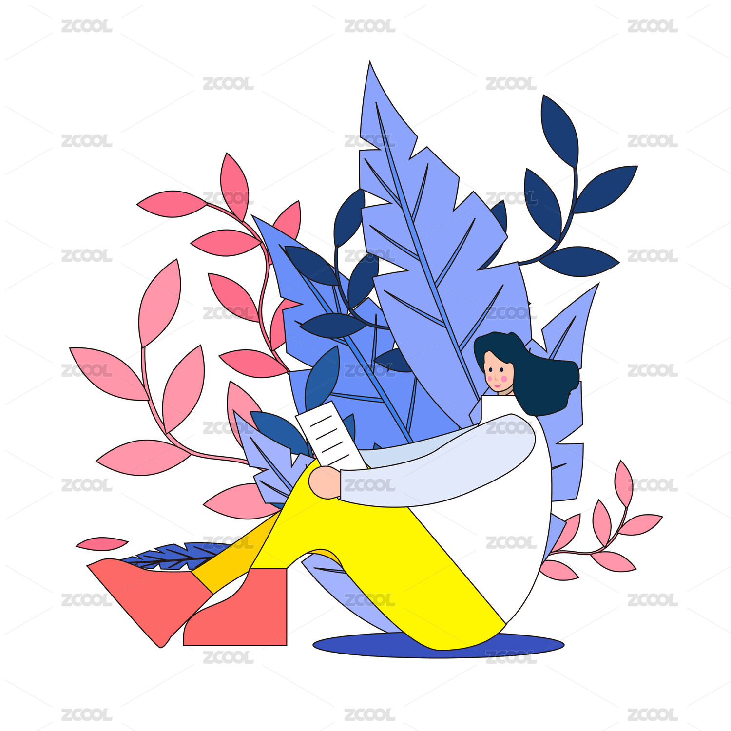 甜蜜,女生,美女,色彩,绿植,绿色,植物,扁平,举牌,通过