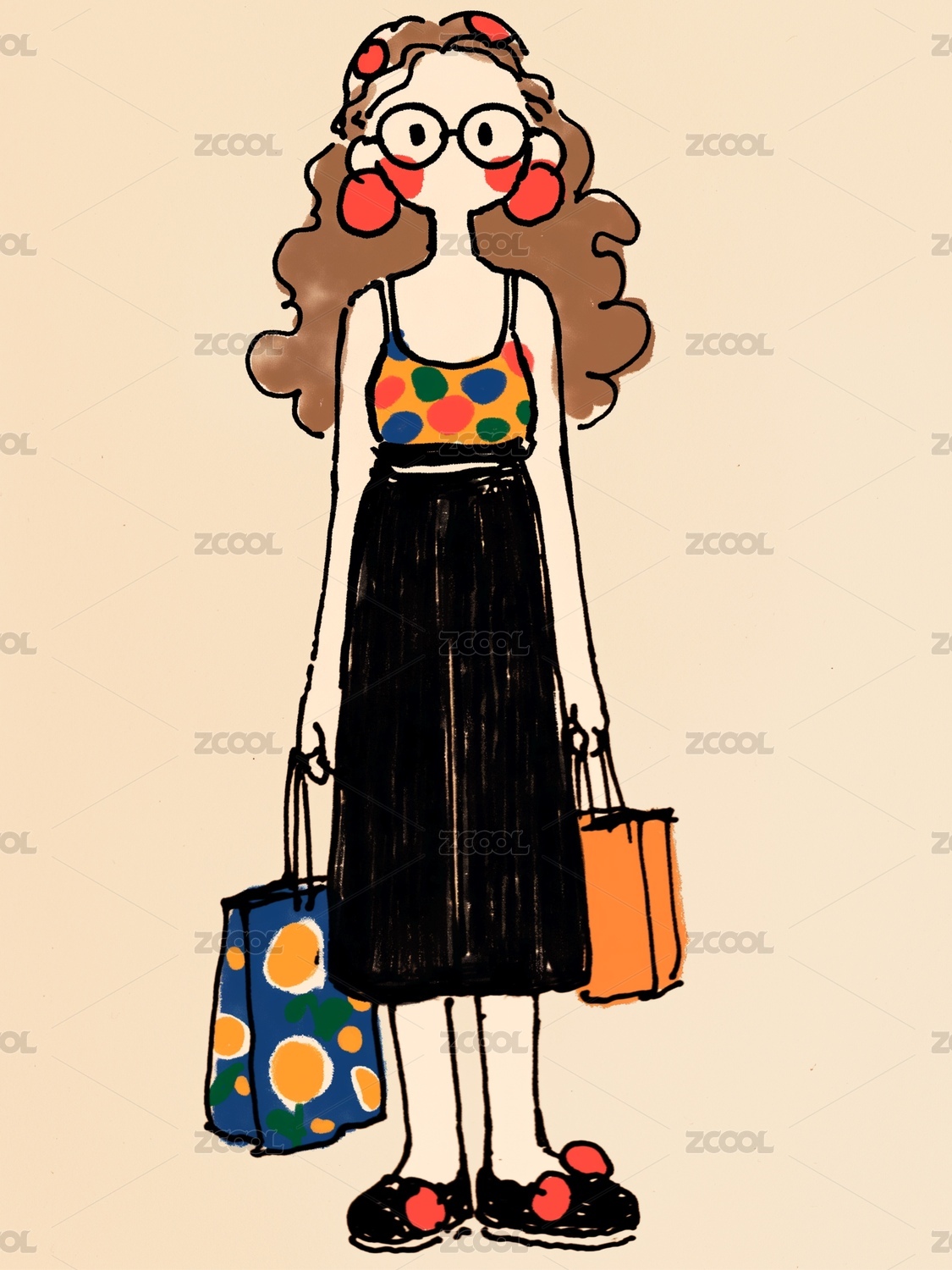 垃圾,女孩,插画,彩铅风,治愈系,可爱,垃圾袋,睡衣