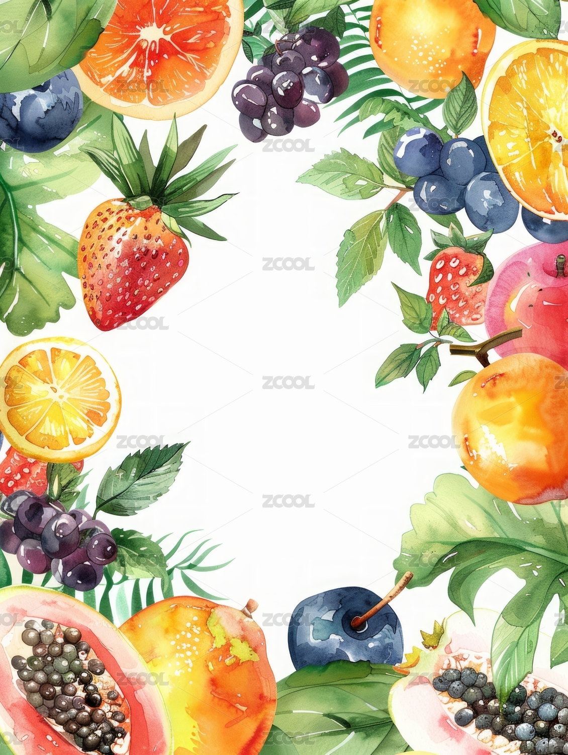 手绘水彩写实西瓜樱桃水蜜桃子樱桃水果插画