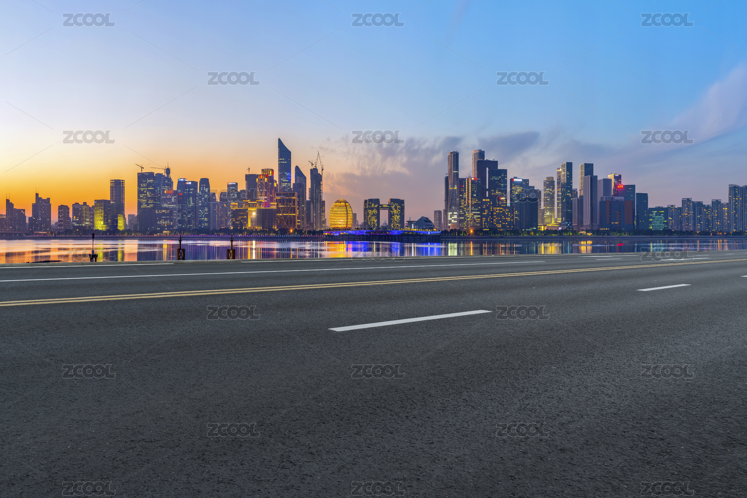 曼哈顿哈德逊河天际线与沥青道路合成汽车广告背景素材