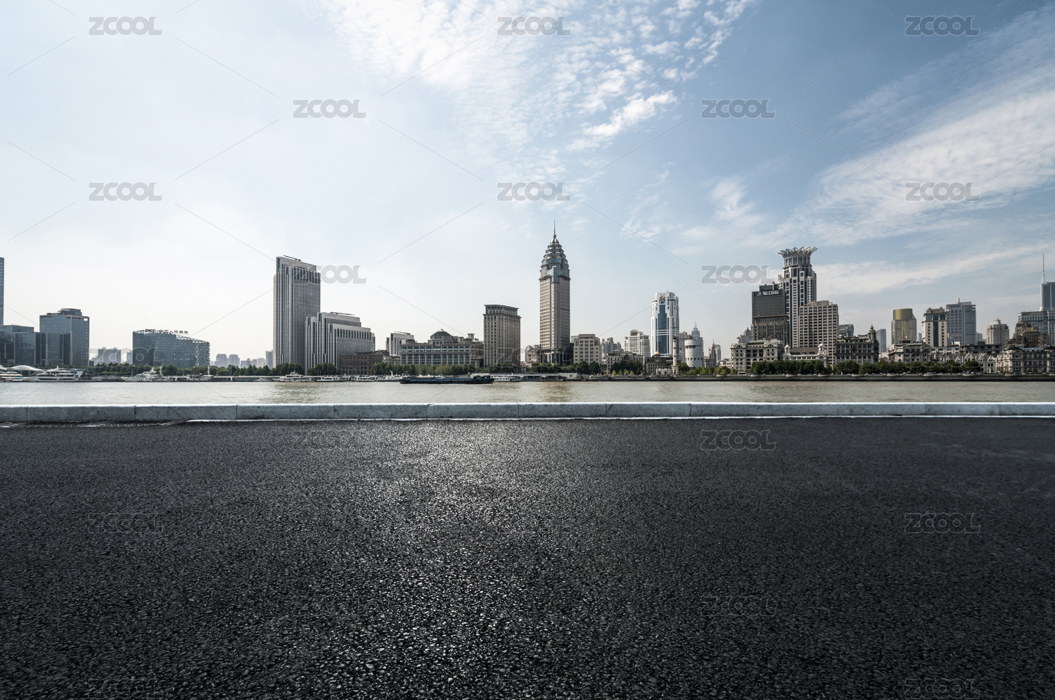 上海黄浦江边上现代建筑和宽敞的高速公路