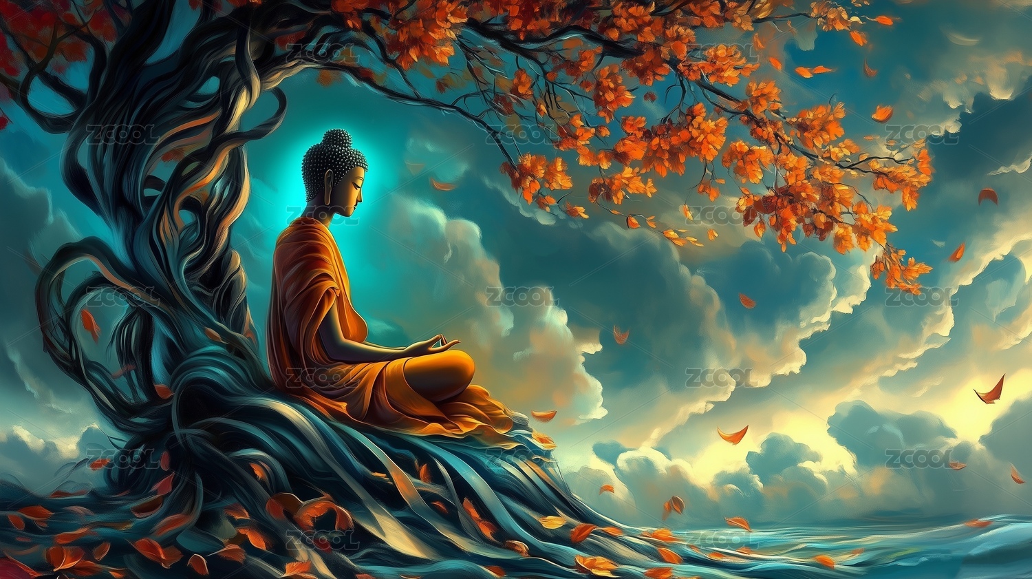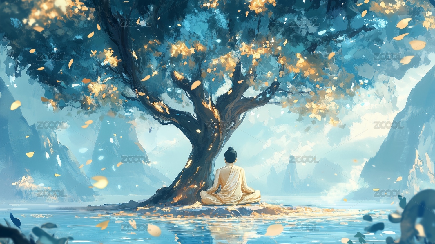 西游记如来佛祖坐在树下冥想奇幻壁纸