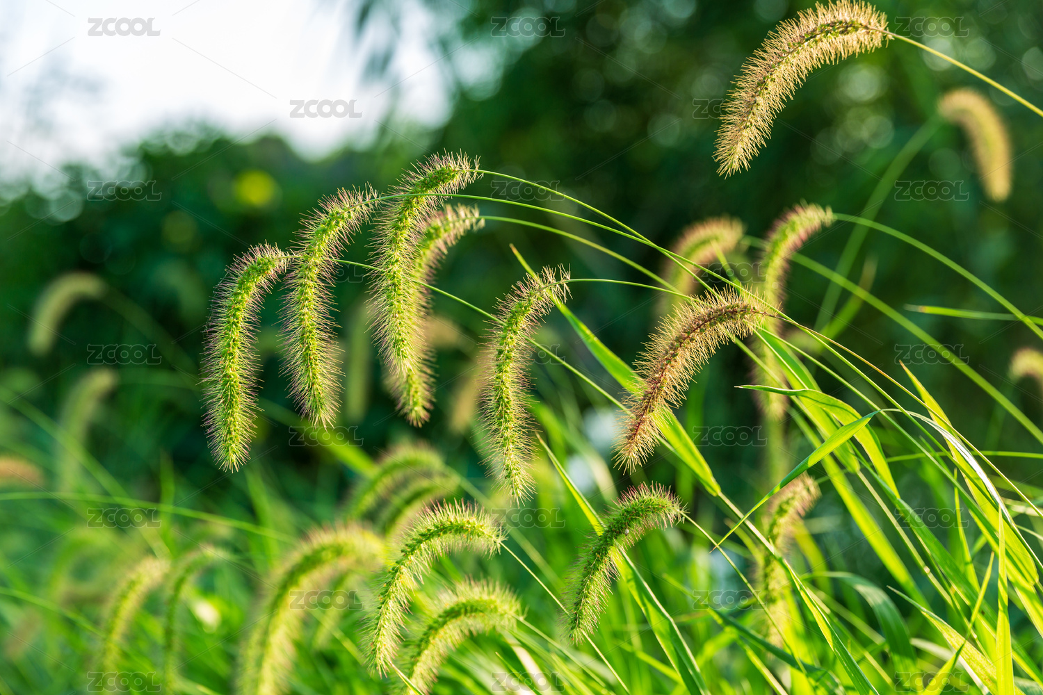 户外阳光照射下闪闪发光的狗尾巴草丛