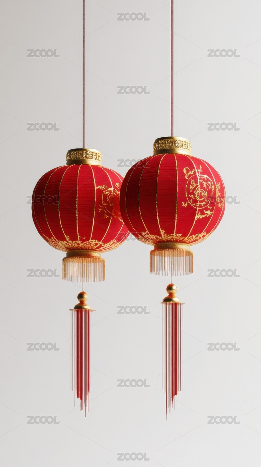 古典喜庆羊毛毡毛绒红色灯笼3D卡通插画