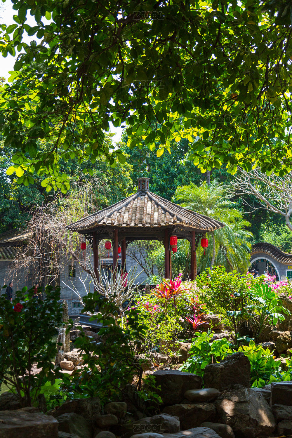 南宁狮山公园旅游景区竹林凉亭园林景观