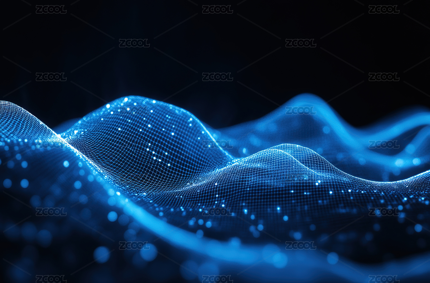 蓝色光点波浪抽象背景