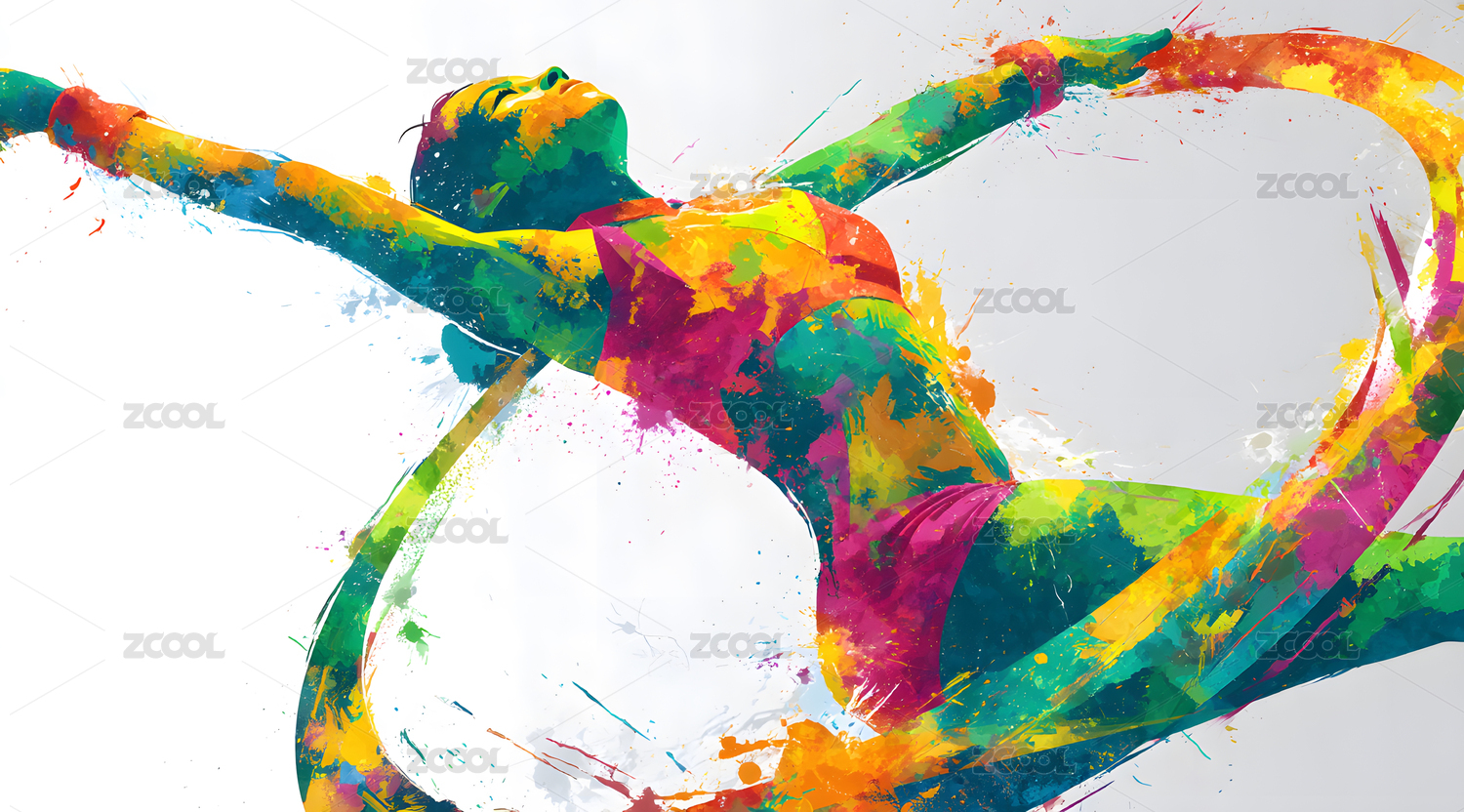 运动国潮比赛竞技体育体操运动员跳起的女人