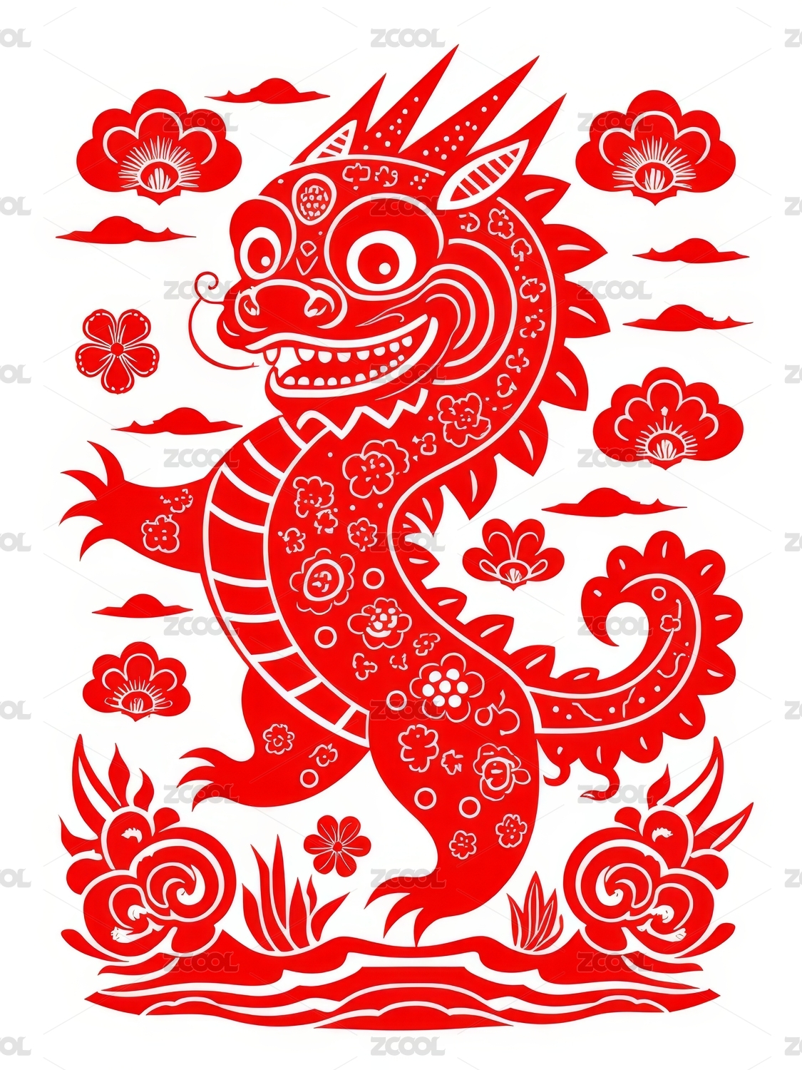 龙年新年传统剪纸元素