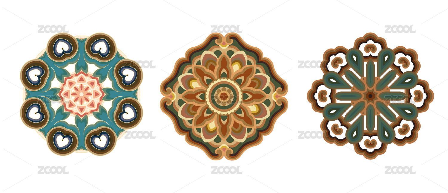 传统的圆形彩色花纹,白色背景
