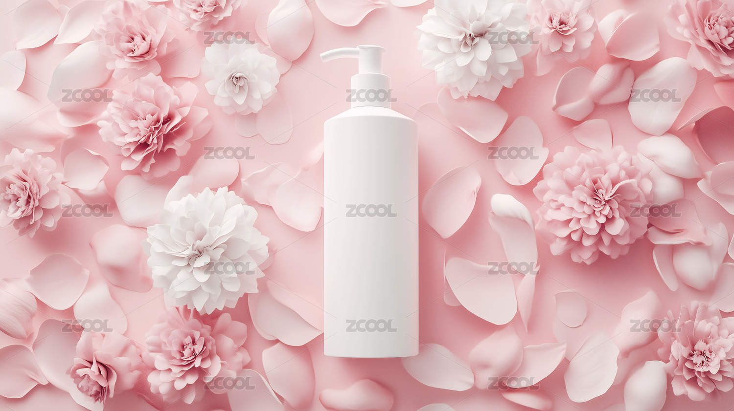 白模型瓶子与粉色花瓣
